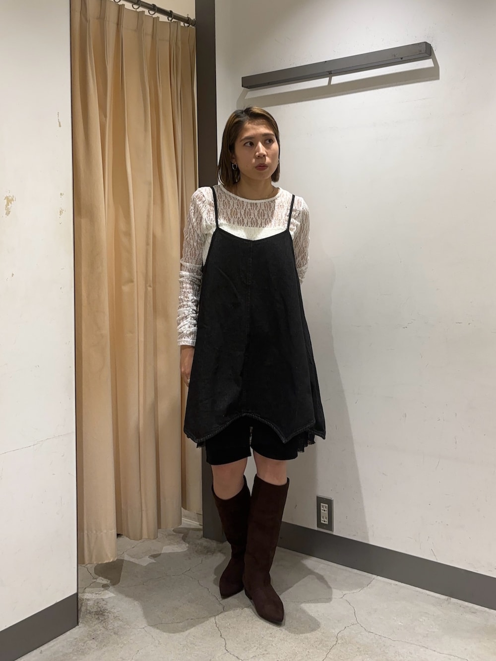 メッシュレイヤードデニムキャミワンピースは中に合わせるもので、長いシーズン着れます♡
