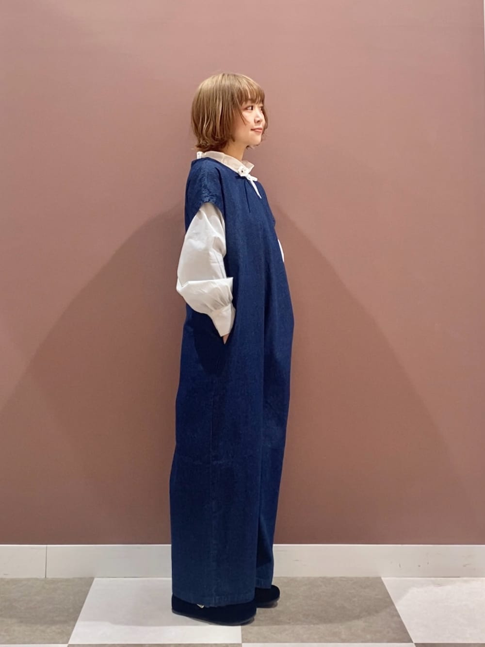 かぐれのデニムのオールインワンに、itemsのフリルブラウスをレイヤード👖