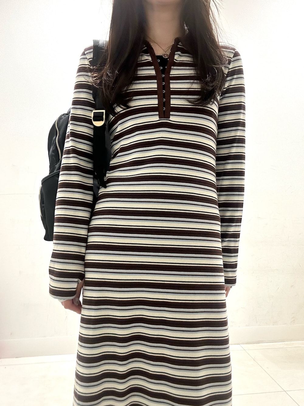 タイトめでシンプルなシルエットですが、フロントホックで顔周りがスッキリ見えます◎
