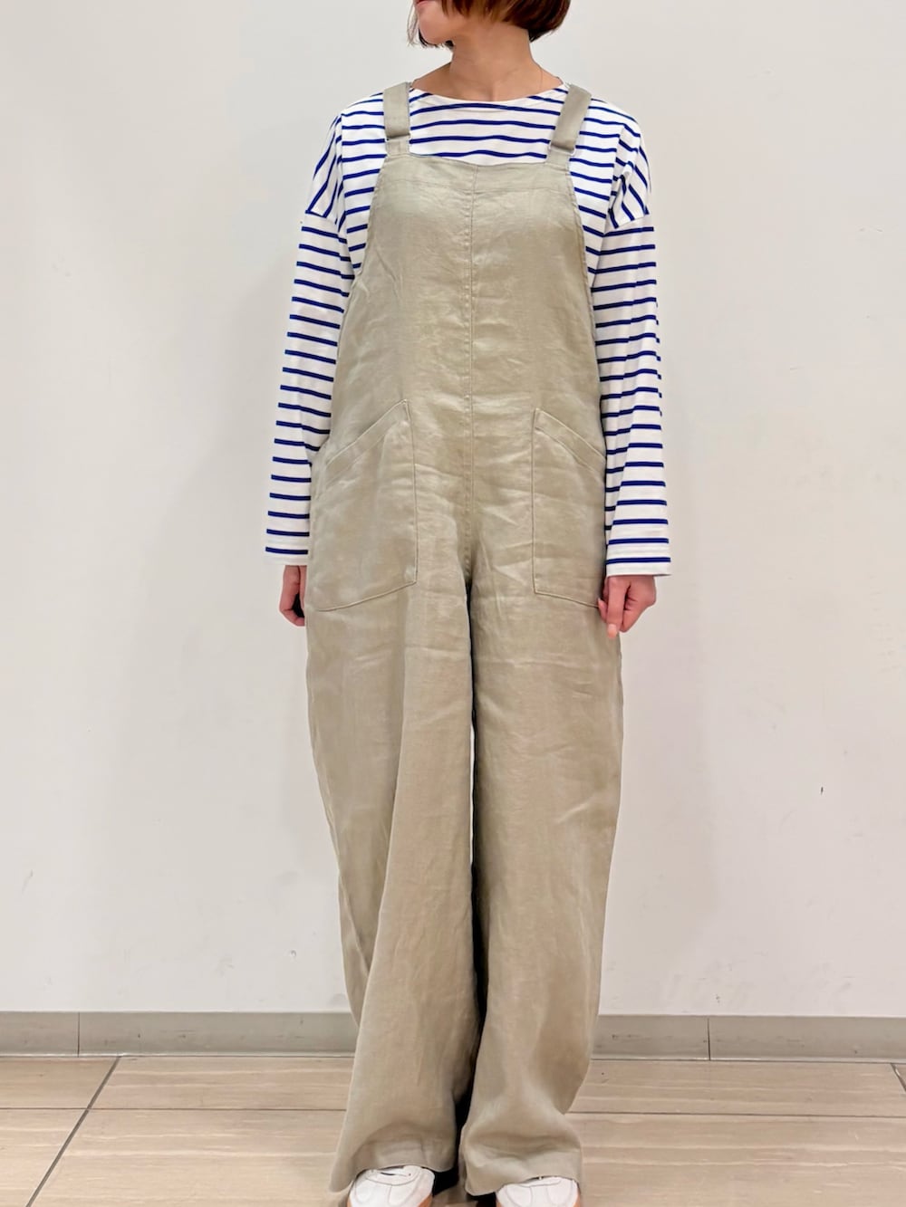 リネンの柔らかな風合いと落ち感がキレイな大人サロペットです。