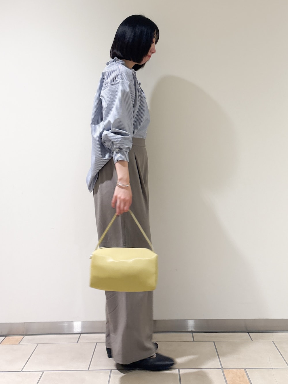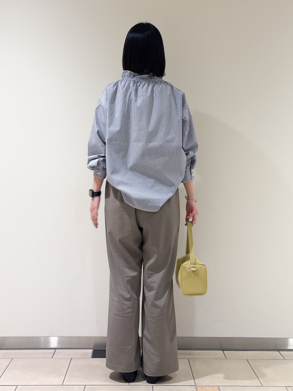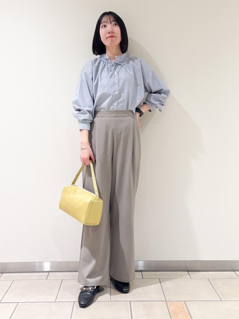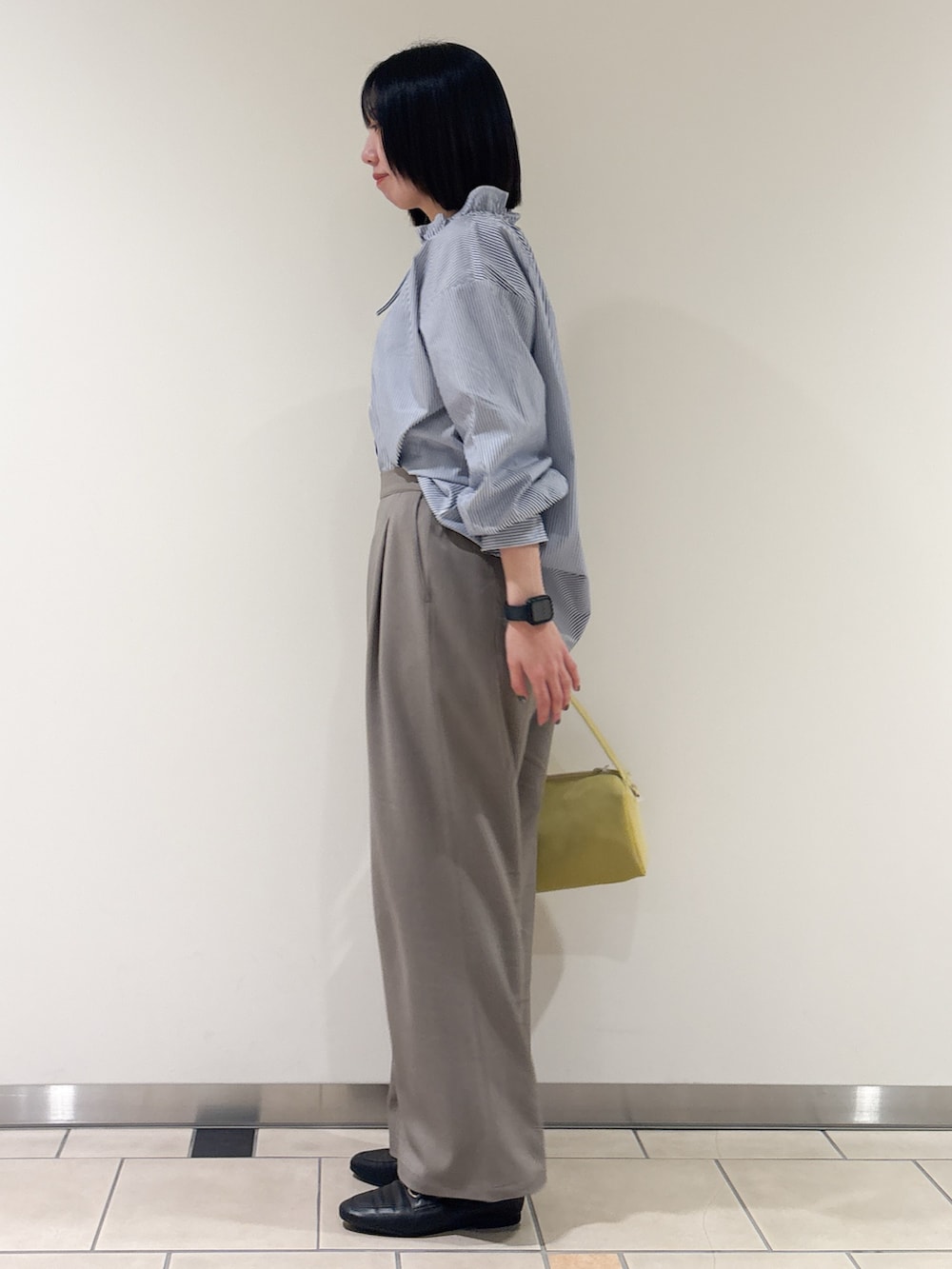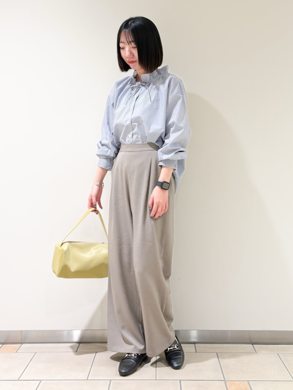 ストライプで爽やかさ抜群なので春にぴったり🌸顔周りにフリルがあるので程よく華やかな女性らしいスタイルになります^^