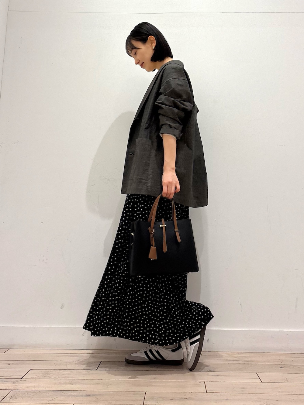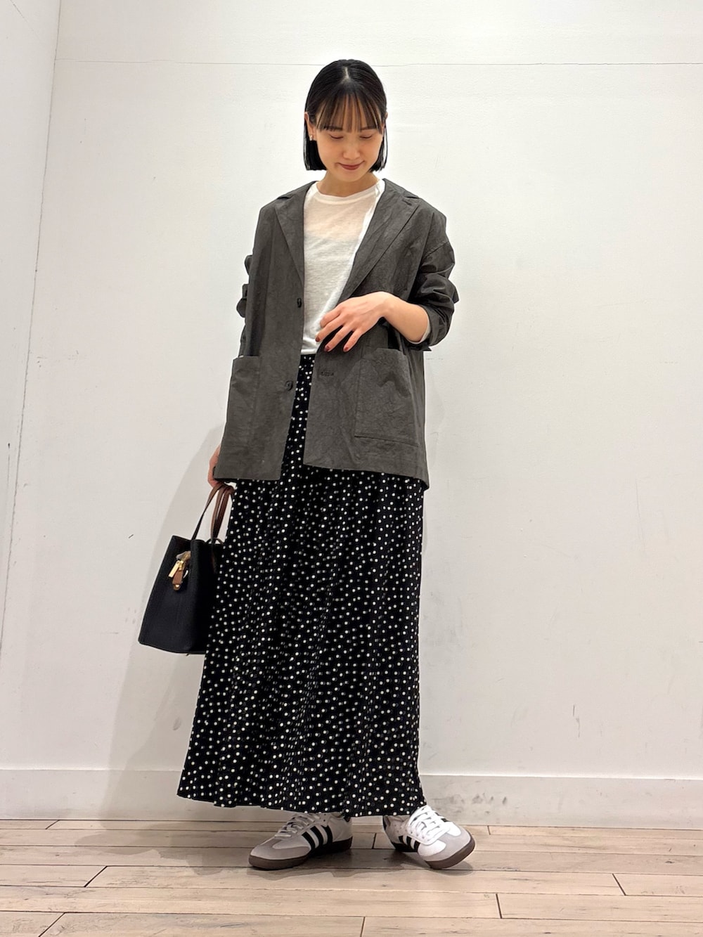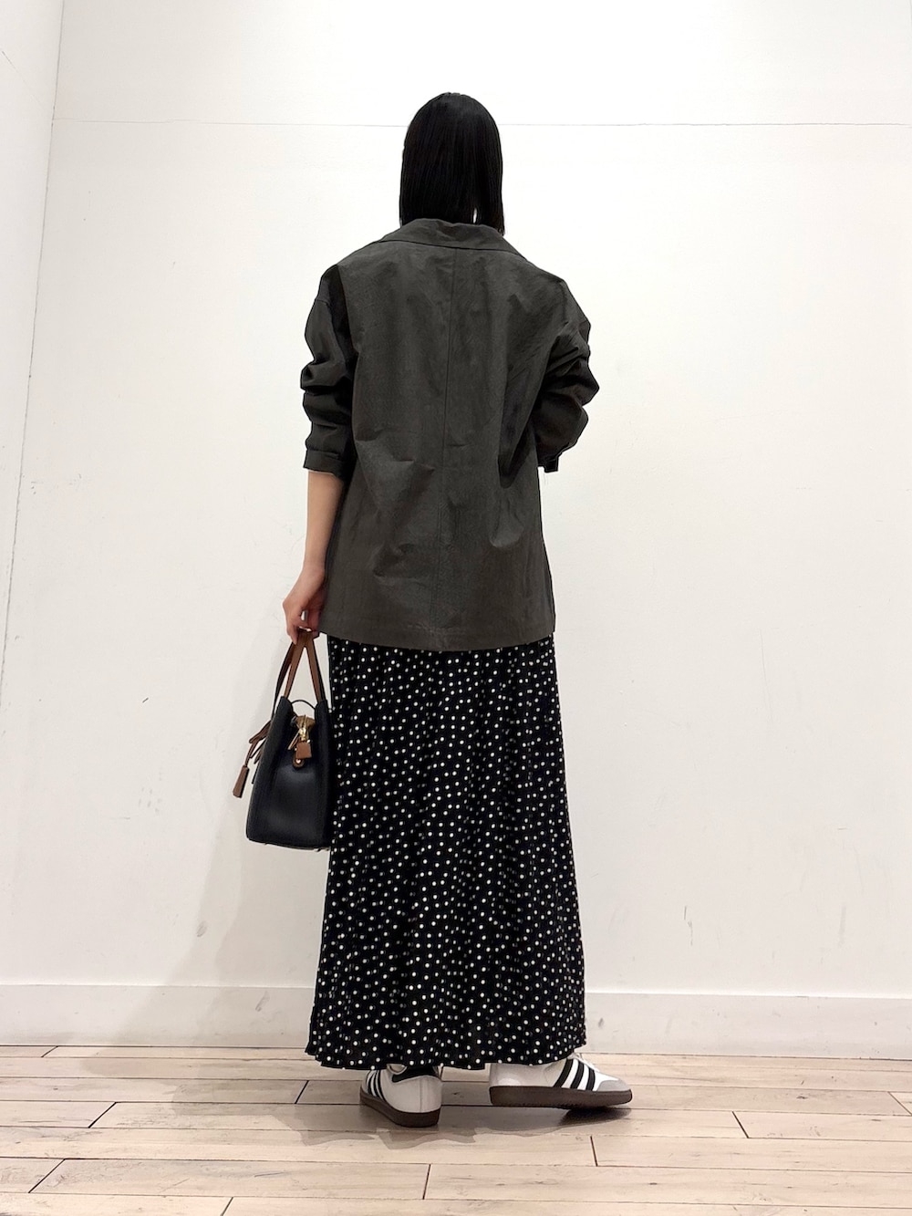 合わせたドット柄スカートはとろみがある素材で広がりすぎません◎