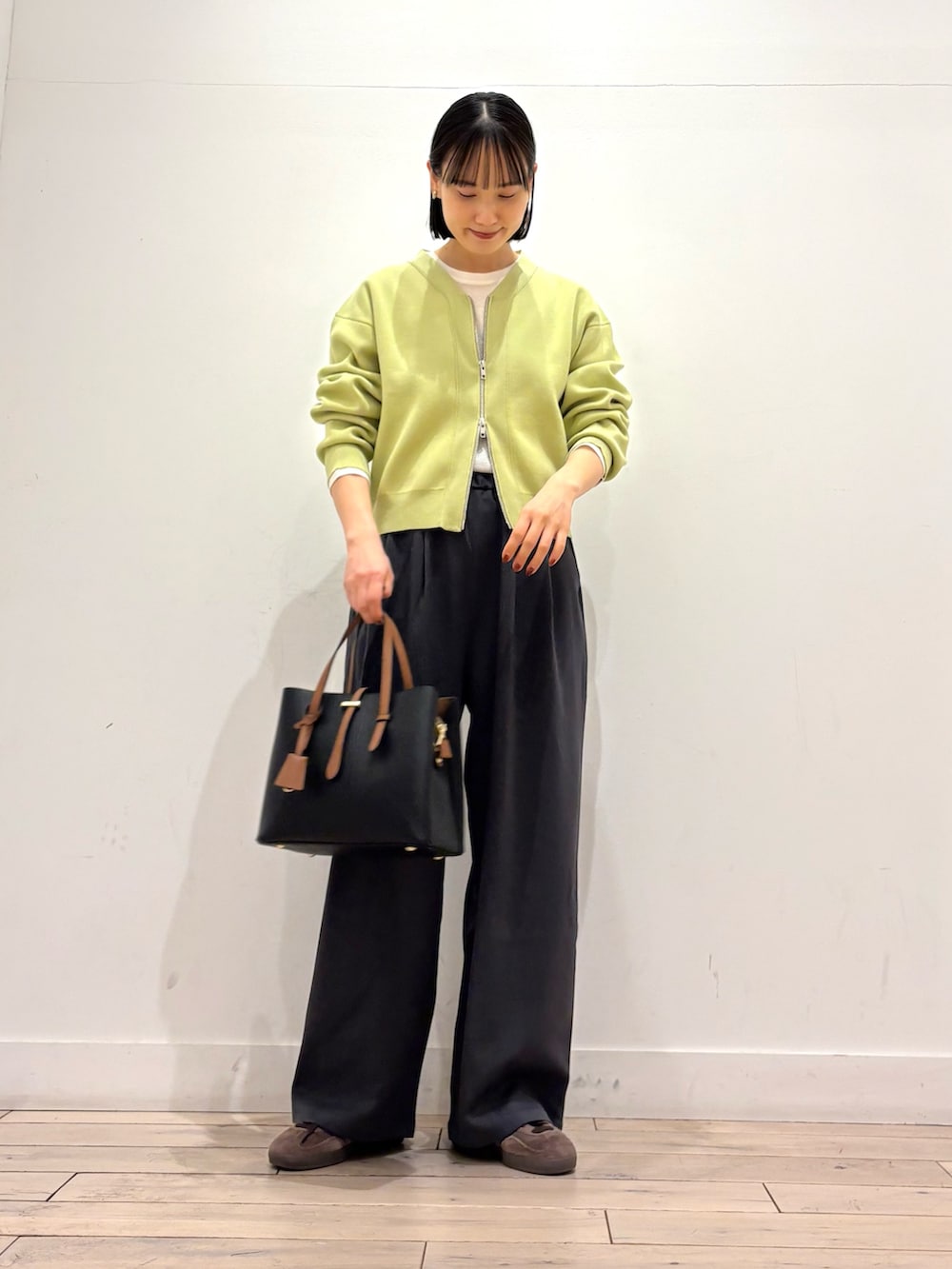 今日は一気に春らしいコーディネートにしてくれるピスタチオカラーを着てみました^ ^