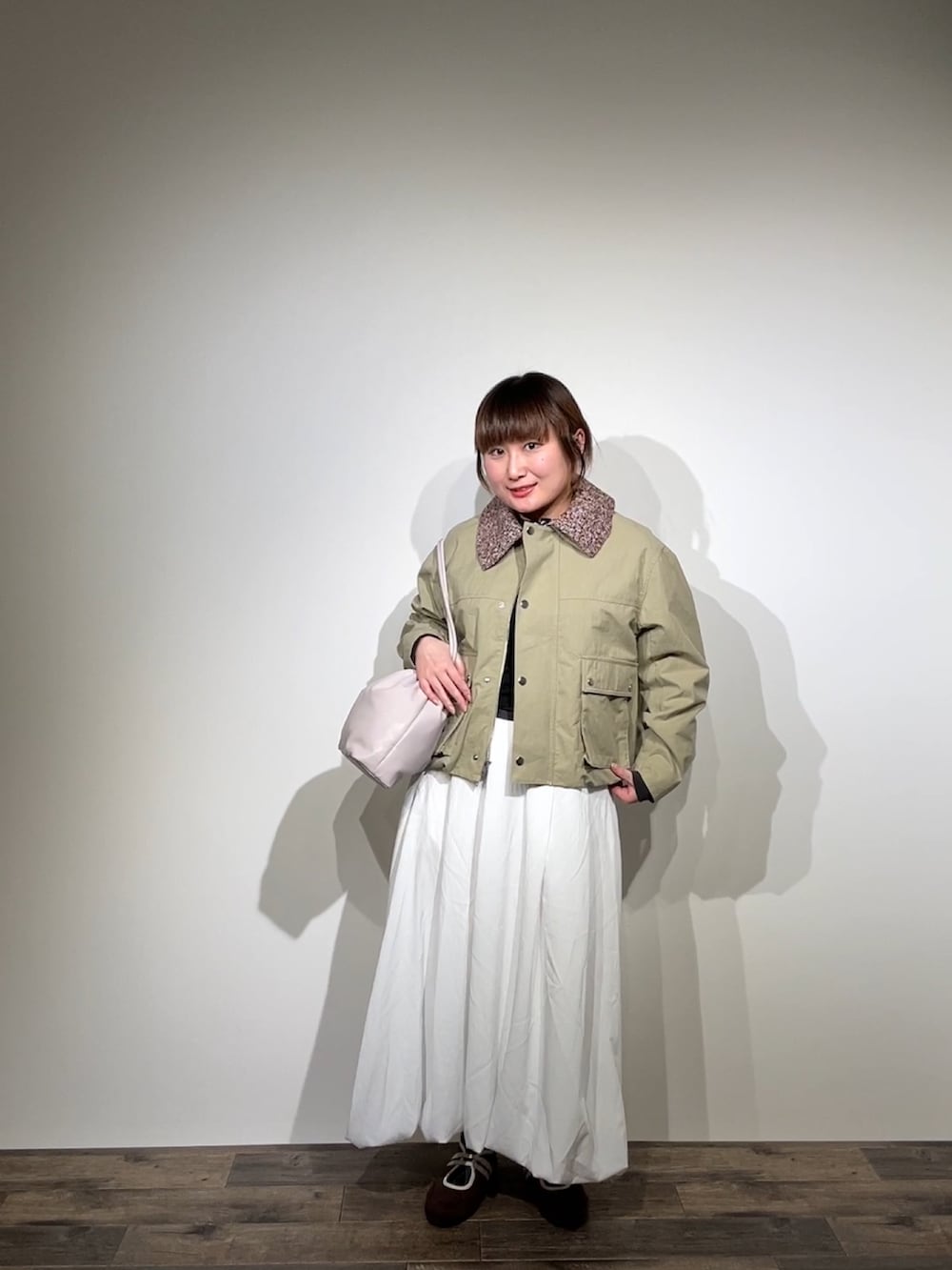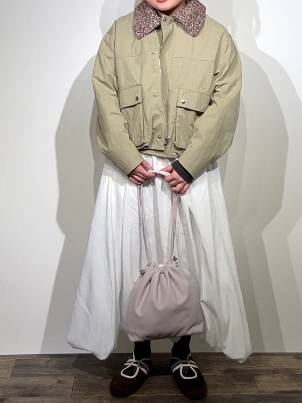 春ぽいバルーンスカートとブルゾンを合わせることで、可愛らしさと大人ぽさをミックスさせてみました❣️