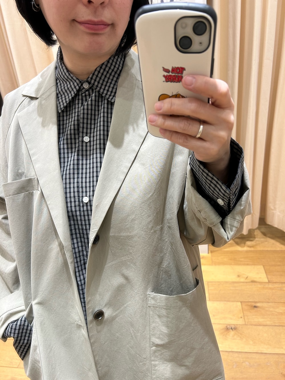 オーバーサイズのジャケットはゆるっと。