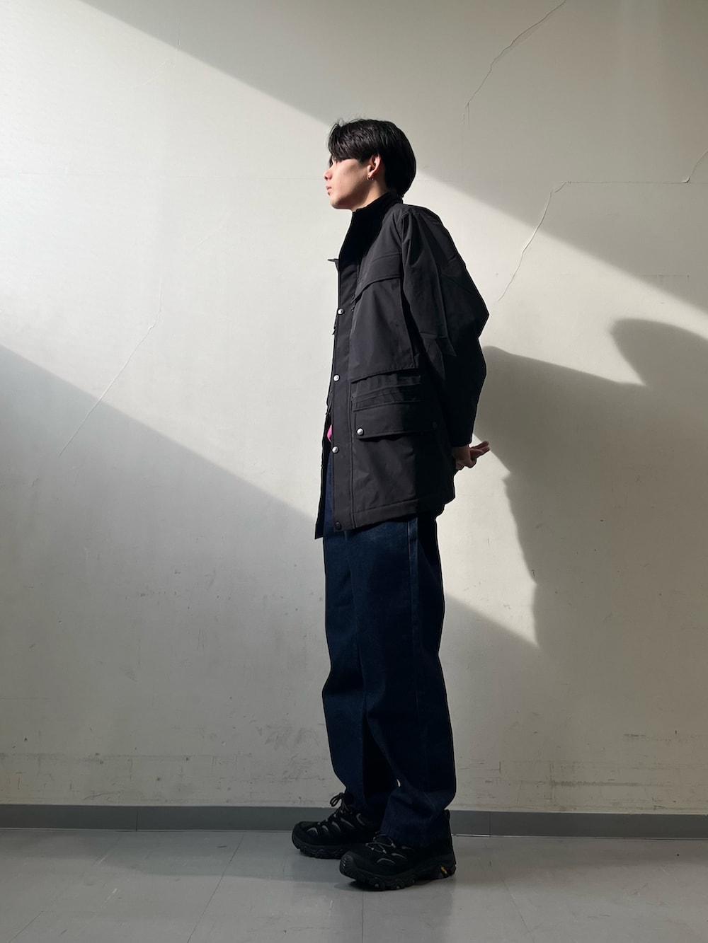 アウターを羽織って、インナーから見えるマゼンタの色味を感じるのも楽しい。