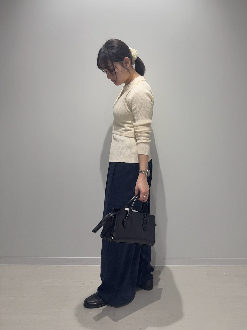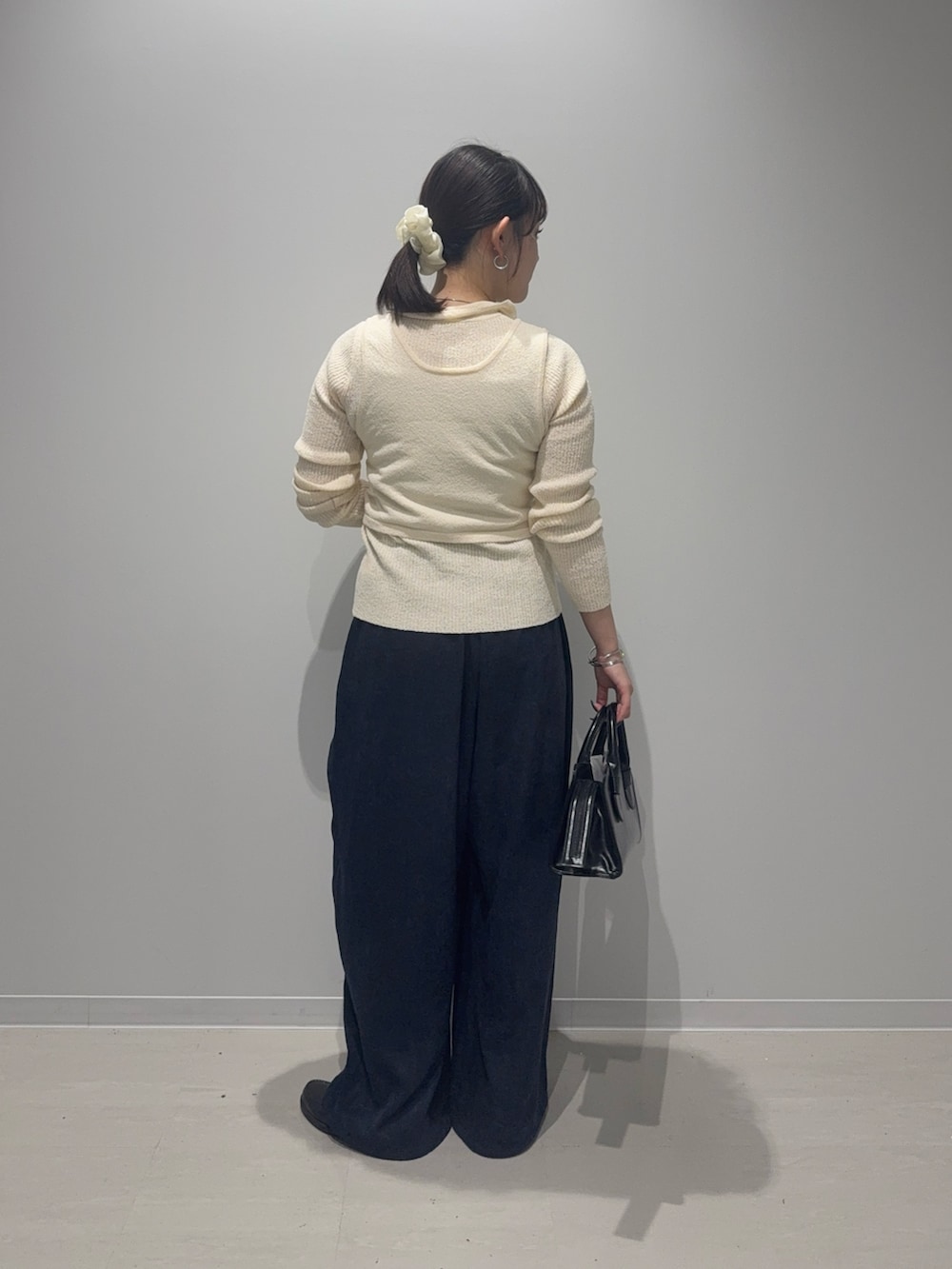ニットがコンパクトなのでワイドパンツ合わせにしました!表面がスエード調になっていてゆるっと履けるけどラフすぎず合わせれるのでおすすめです!