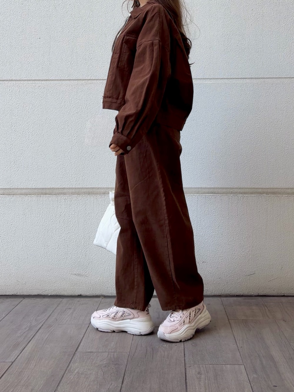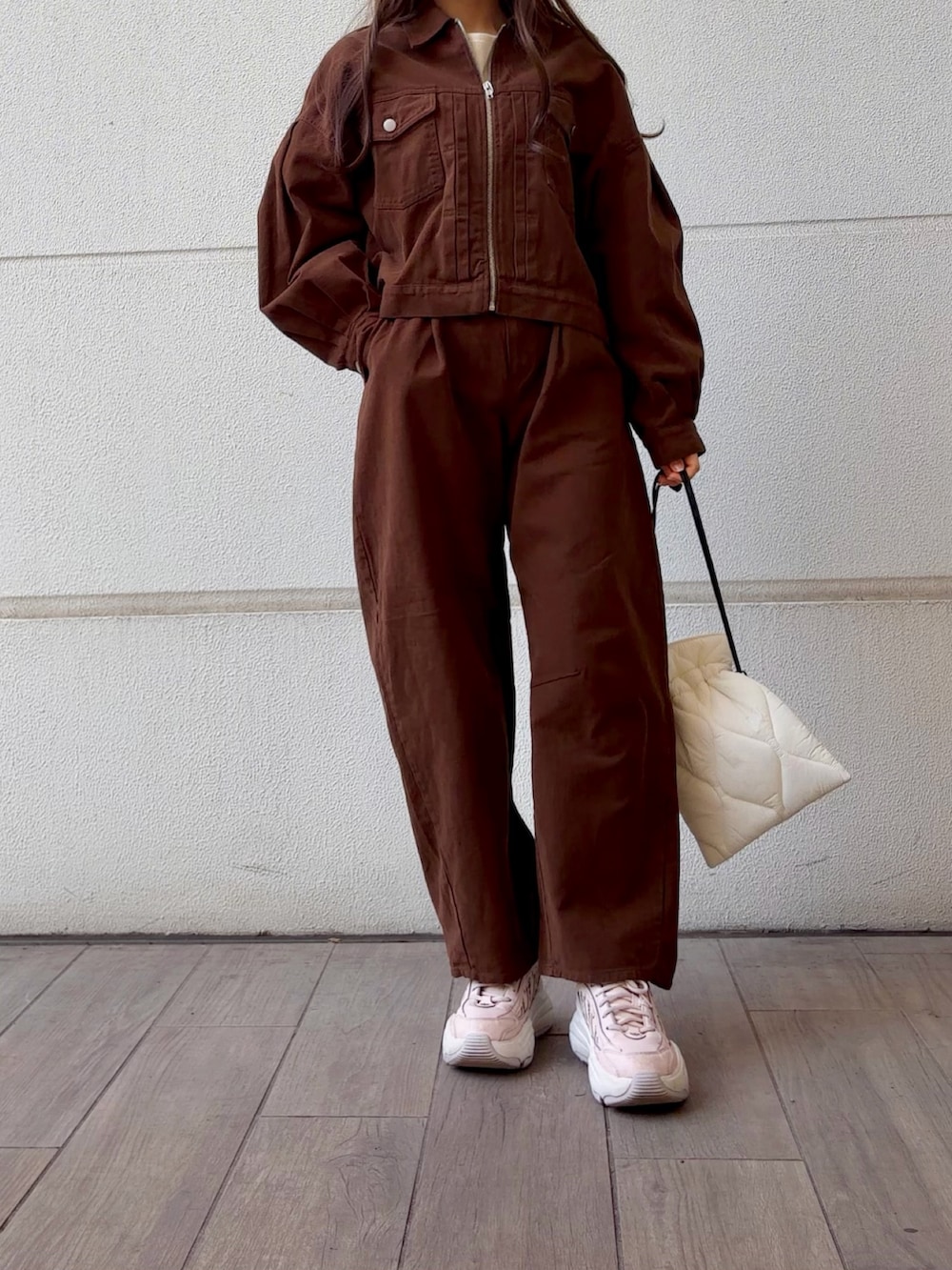 シルエットがゆる可愛い、ブラウンのセットアップコーデです☕️