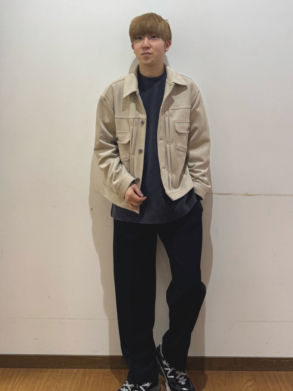 パンツは黒のスラックスを使用しております。こちらもお尻周りがやや大きめで、仕事周りでも使えるオススメのアイテムとなっております