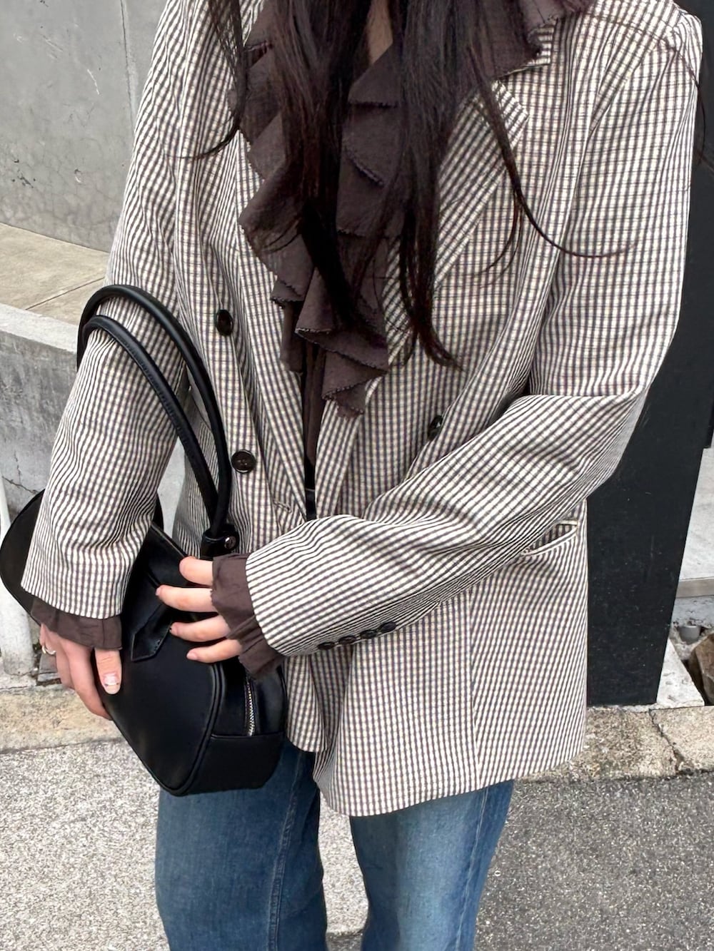 フリル×ジャケットが大人可愛い組み合わせでお気に入りのコーディネートです。