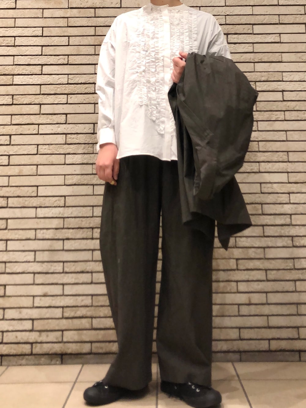 今回は同素材のパンツとセットアップでキレイめな装いに。インナーをかえるとカジュアルな雰囲気にもはまります。