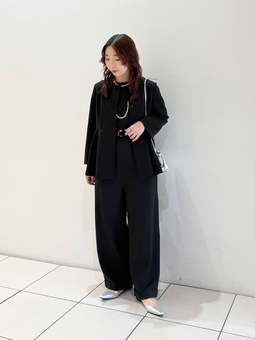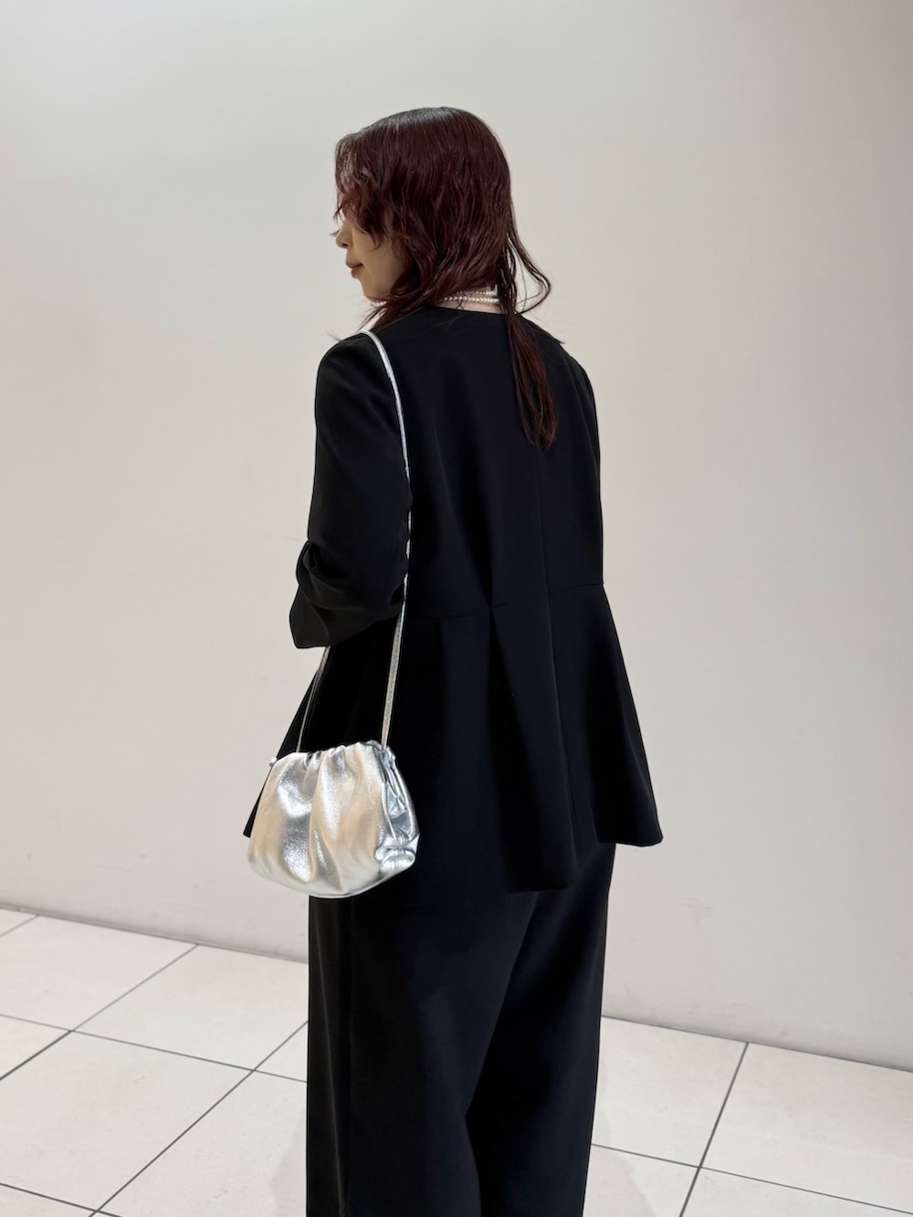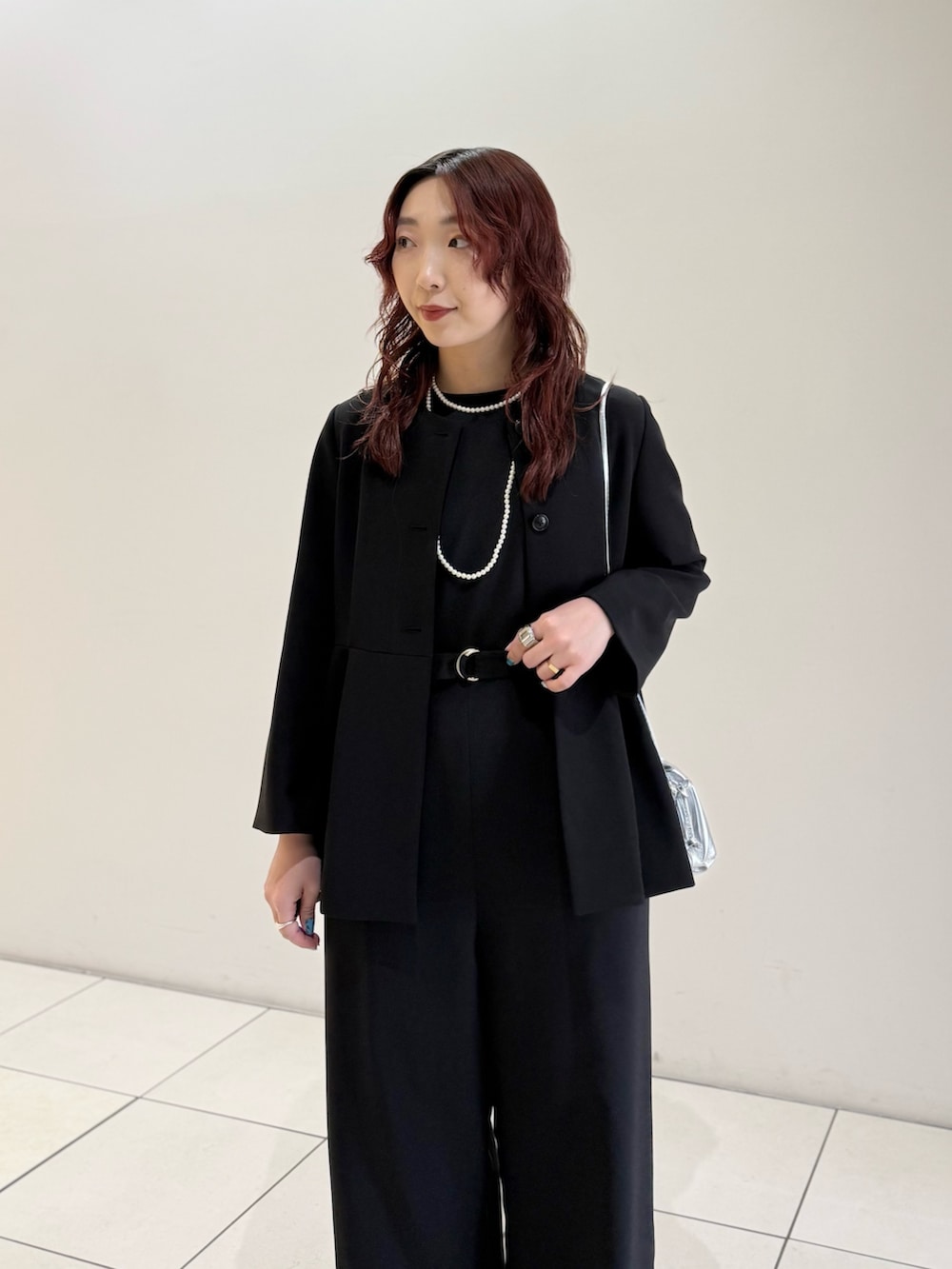 ペプラムシルエットが上品な印象のジャケットです。