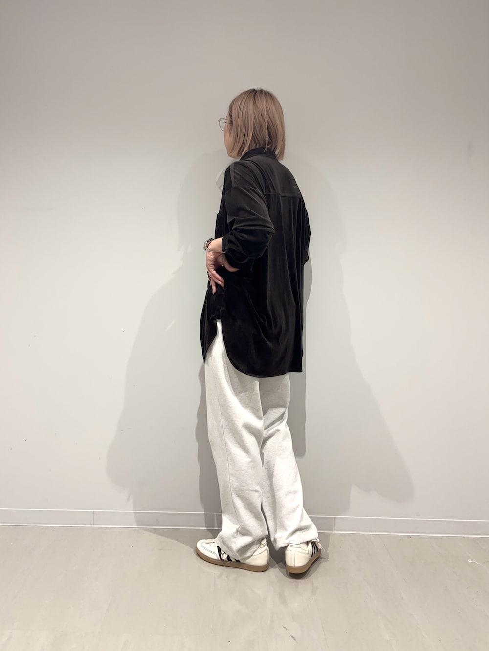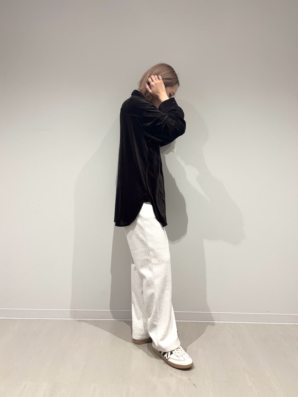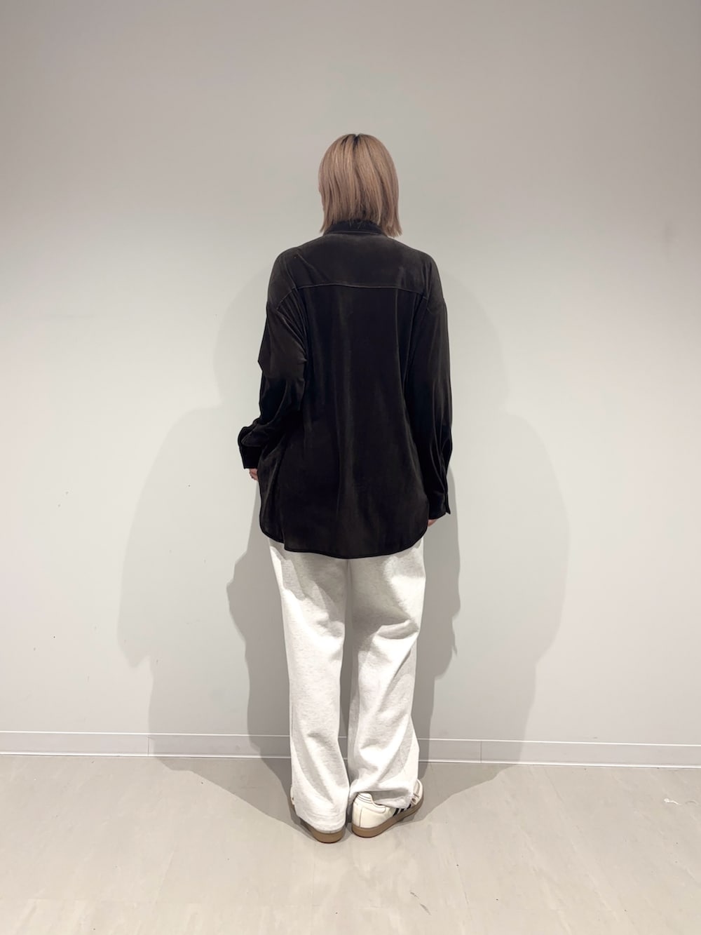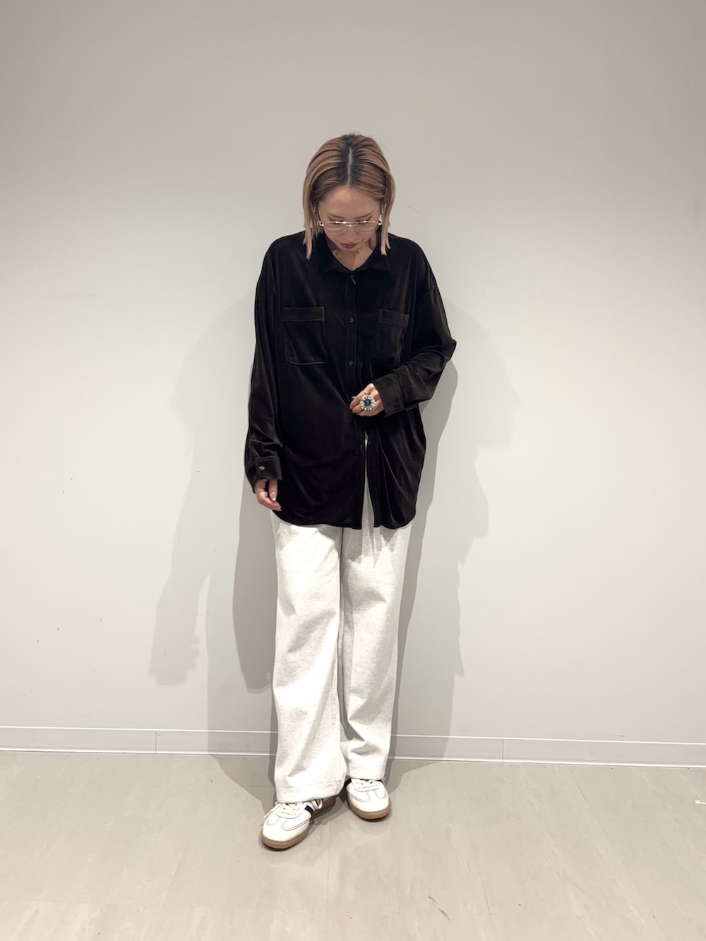 ベロア素材ですが程よくシアーなのでこれからの時期にぴったりです!シンプルな形のシャツは素材感でおしゃれさをプラスするのもおすすめです◎少しルーズですが落ち感がありスッキリ着用できます!