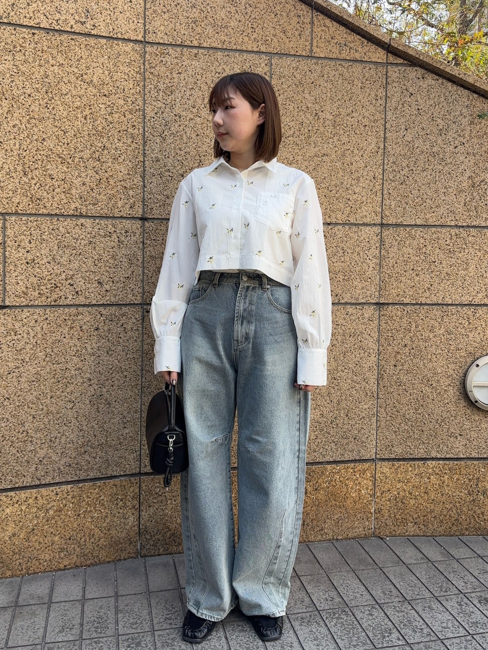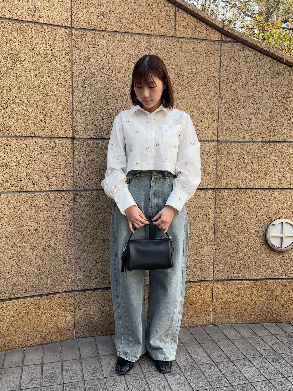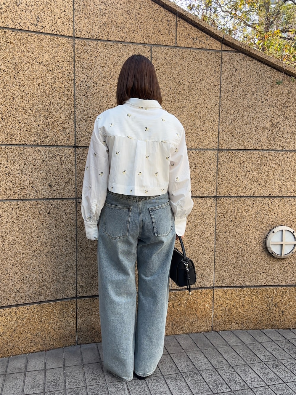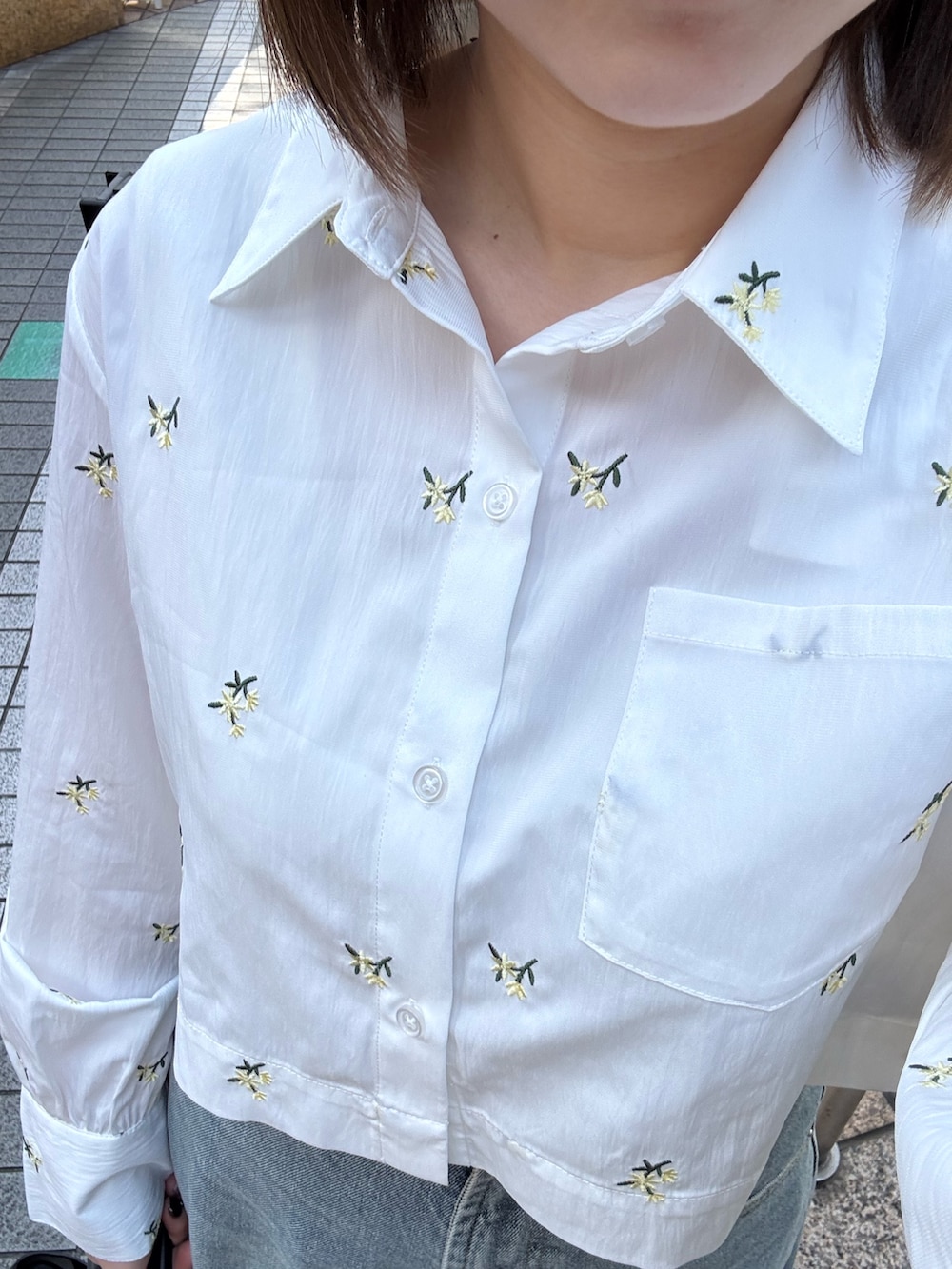 小花柄の刺繍が入ったシャツで春コーデを組んでみました🤍