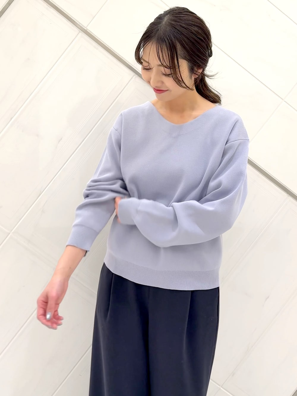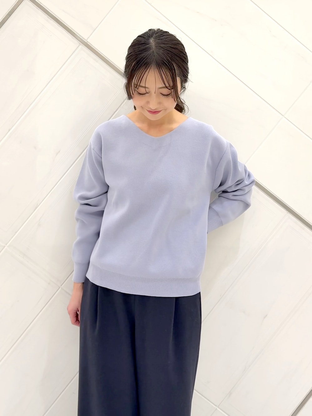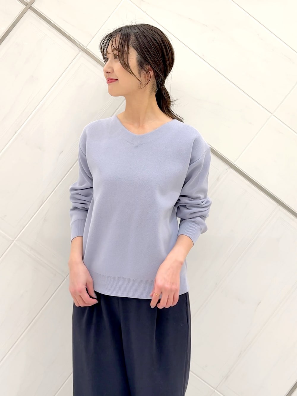 『仁村紗和さん着用』『UR TECH Renew Knit』Vネックプルオーバー