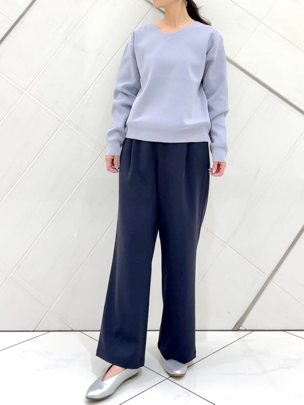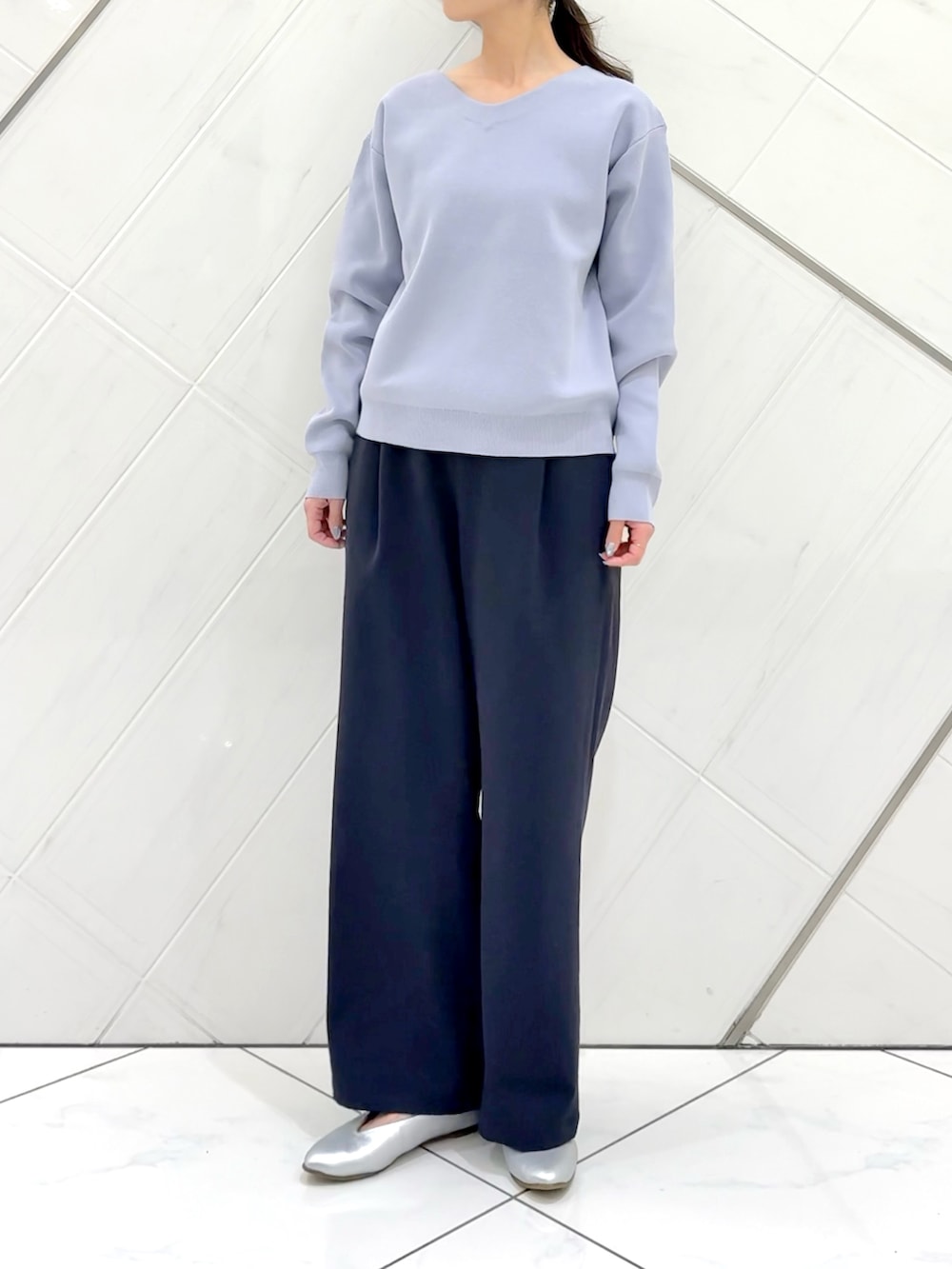 シーズン問わず着用することができ、浅めのVネックで中にインナーを入れても雰囲気が変わるのでおすすめです。