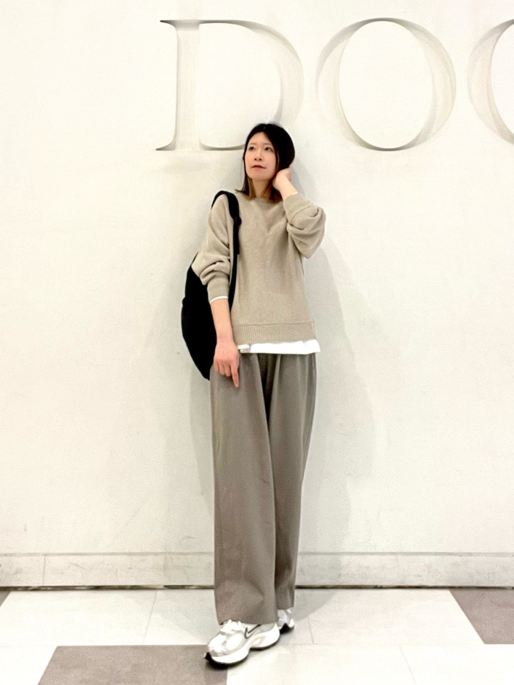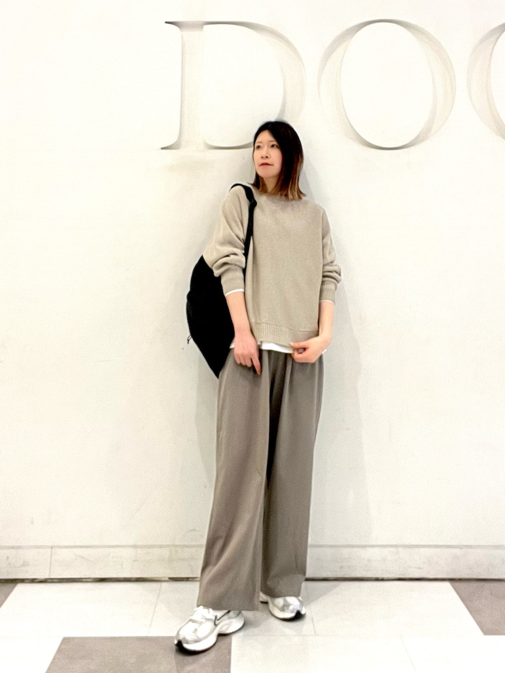 トップスはリネン混の春ニットです!さらっとした肌触りで程よいゆったりとしたシルエット☘️ドルマンスリーブなので通気性も良く快適な着心地です◎カジュアルに合わせて着用してますが、きれいめにも合わせやすい万能ニットです!