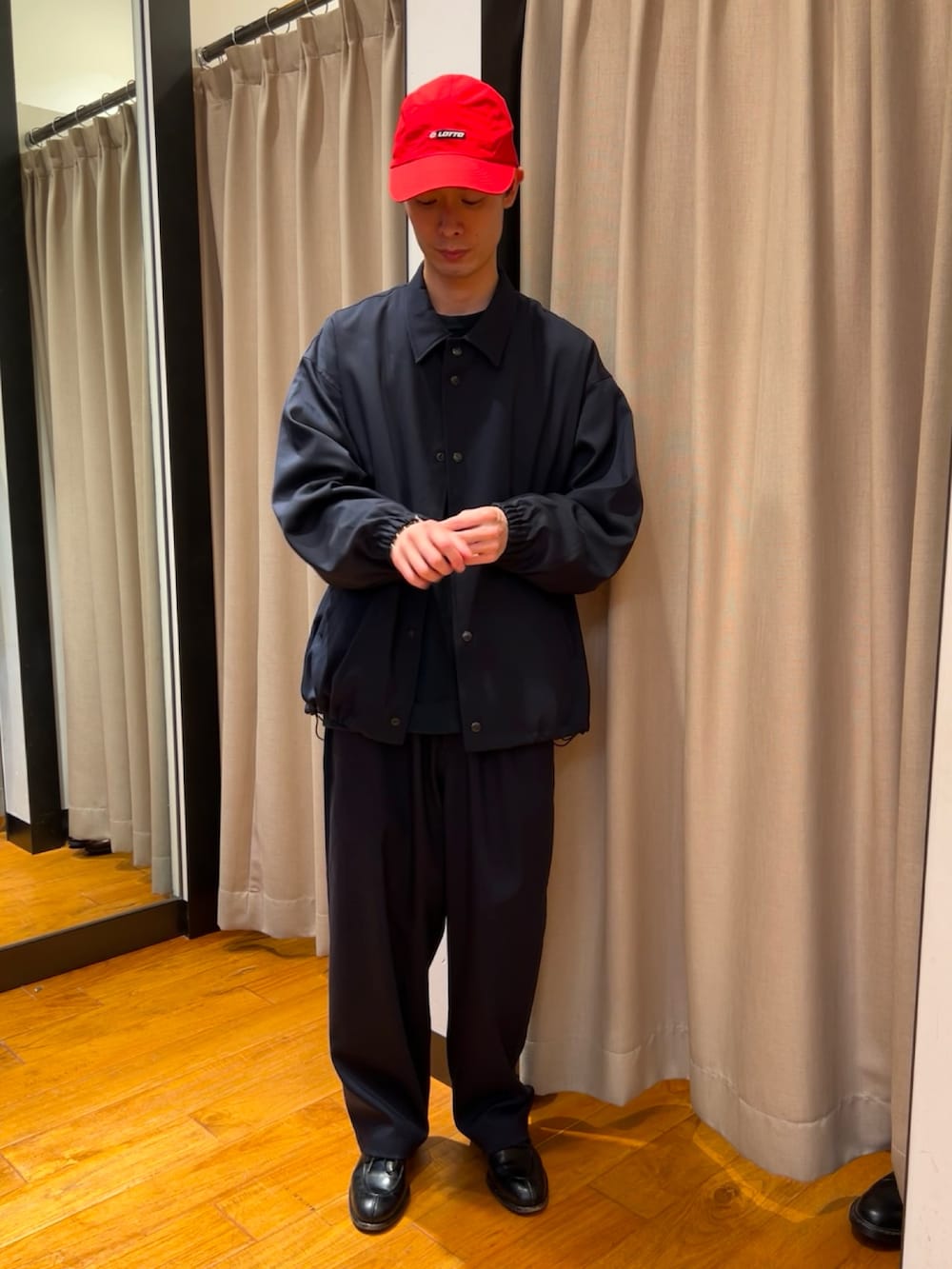 wool混のポリエステル生地は落ち感がとても綺麗に出る秀逸な生地感です。