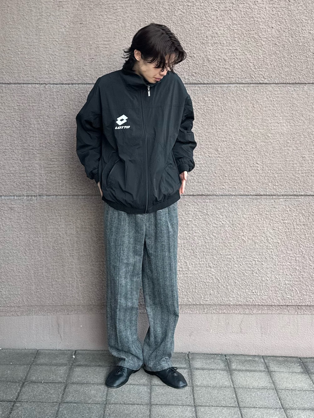 ナイロンのブルゾンはロゴが胸にありそれ以外はシンプルなデザインになっていて、楽にカッコよく着れるアイテムです!これからの季節にぴったりなアイテムです!スラックスはシルエットが良く合わせやすいアイテムです!