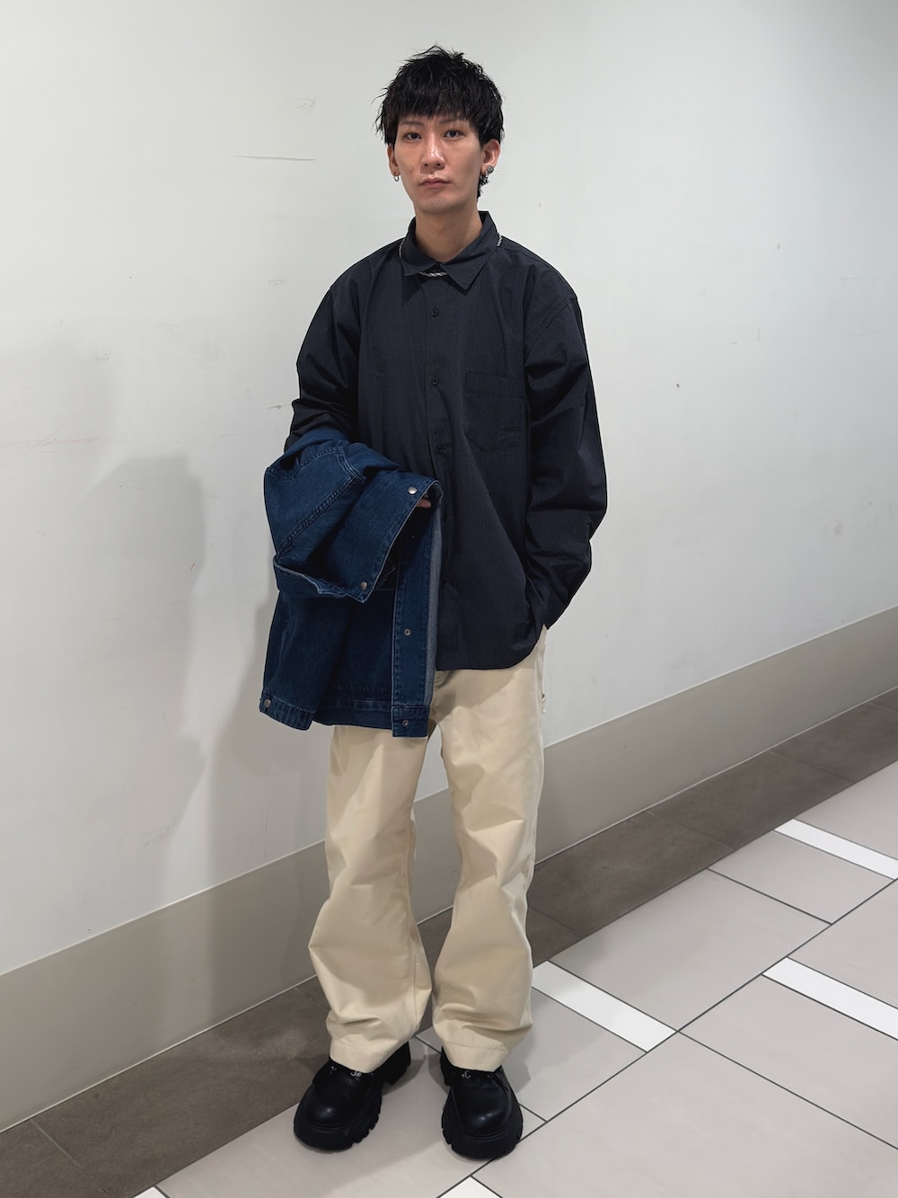 TCブロードレギュラーカラーシャツをインナーに使用したコーディネートです。