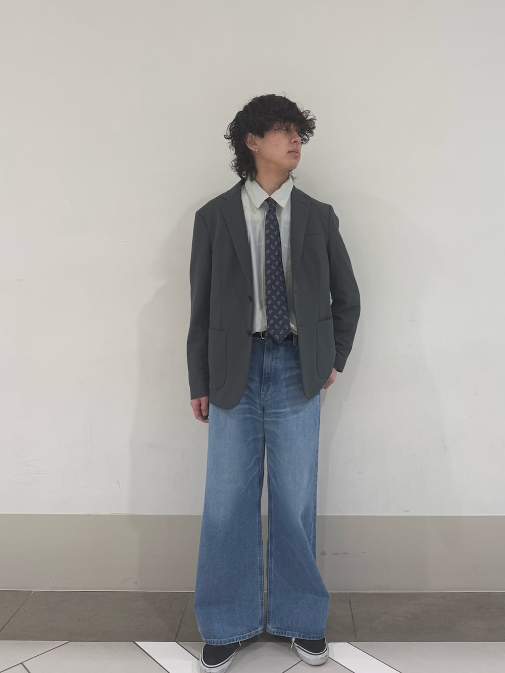 いつもご覧いただきありがとうございます!今回のコーデは、タイトめなテーラードジャケットに対し、あえてワイドなバギーデニムを合わせることで、Aラインを意識して今っぽさを演出してみました。