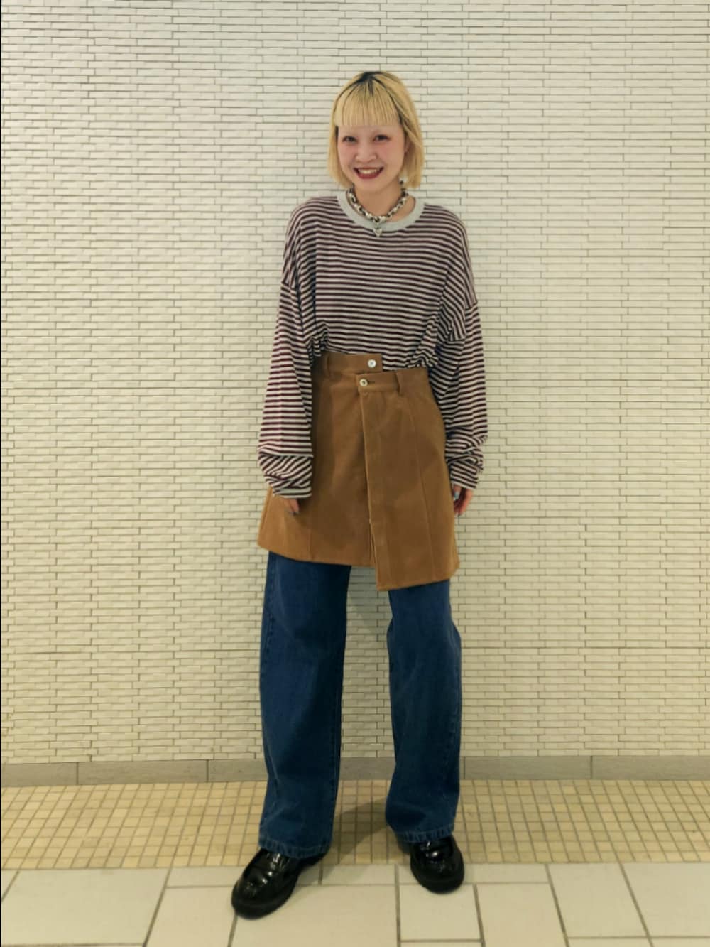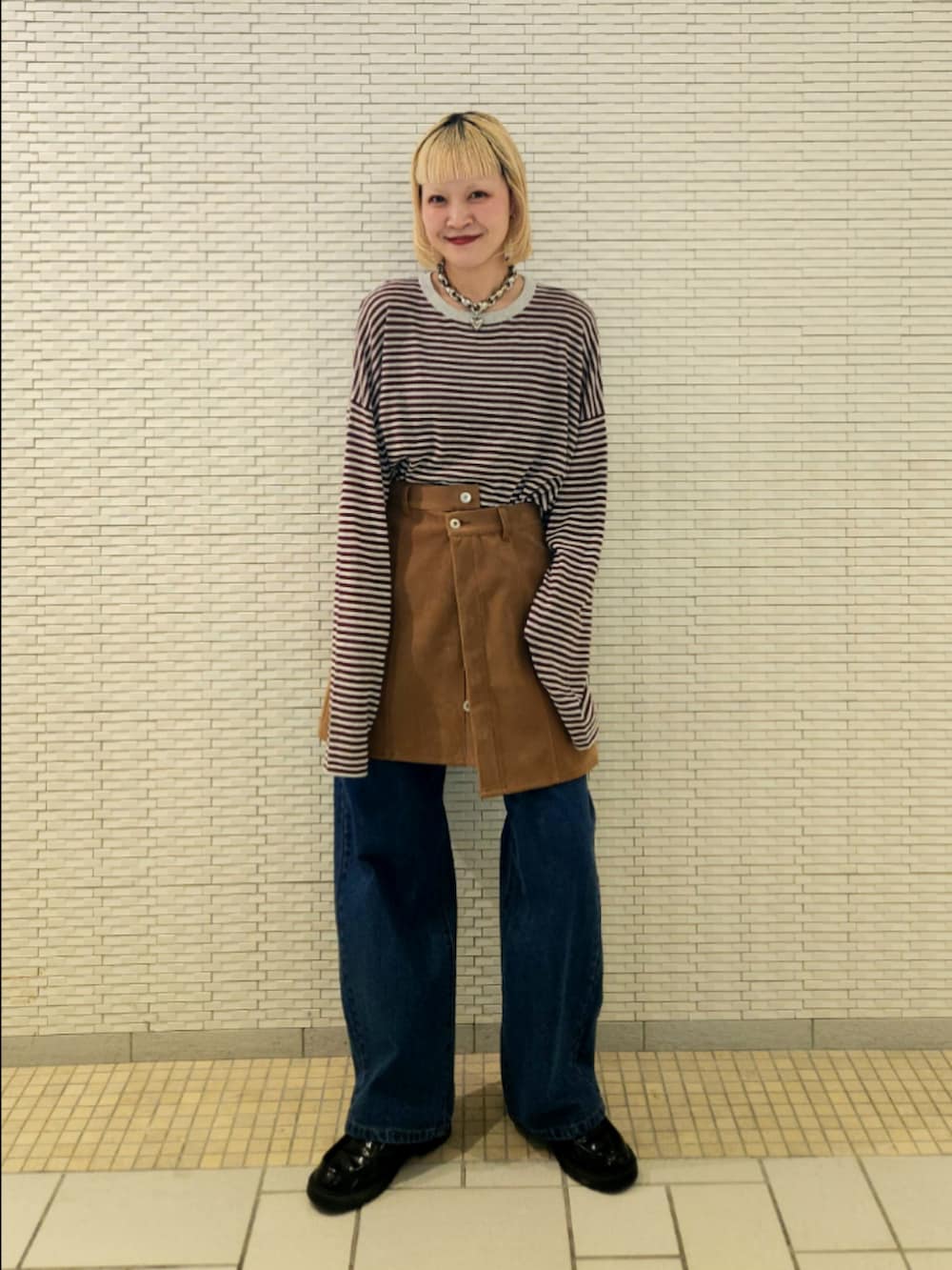 ボーダーのカットソーは、ゆったりめのオーバーサイズなので、デニムなどとのゆったり合わせもオススメ♬