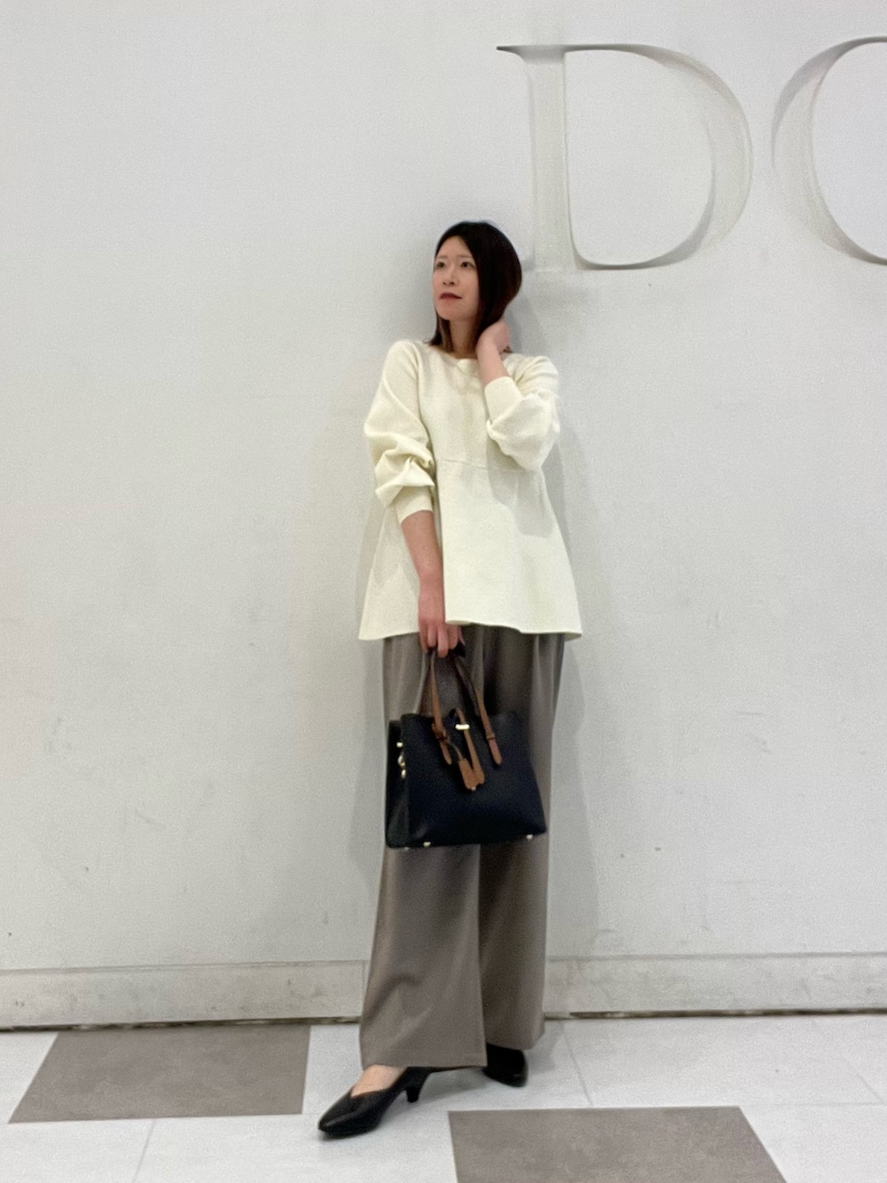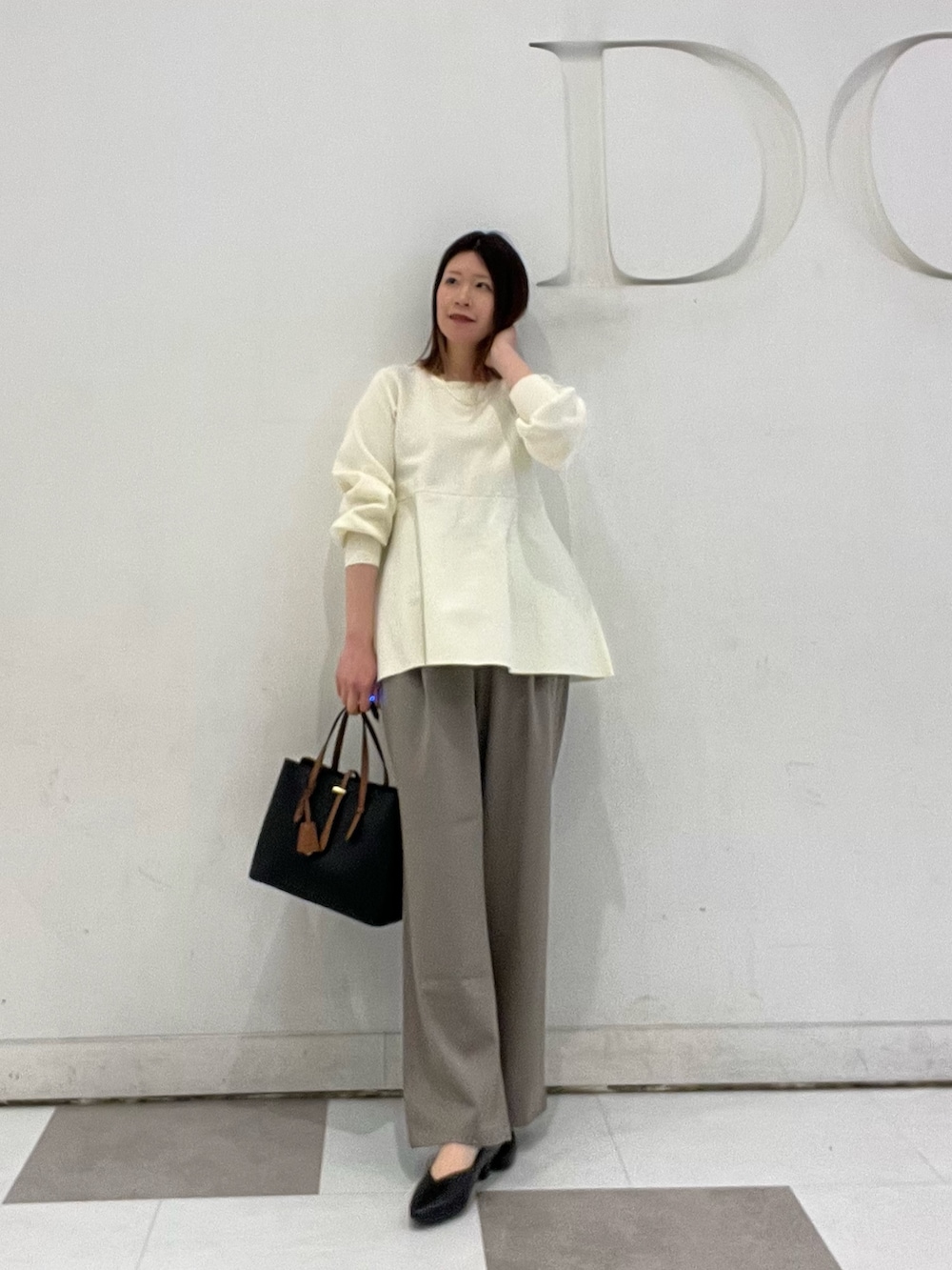 トップスはきれいめにもカジュアルにも着回しのできるペプラムニット🌸きれいめ合わせで着てみました!ウエストより高めに切り替えが入ってるので自然にスタイルアップが叶います🫶🏻柔らかな肌触りで着心地が良くオススメです◎