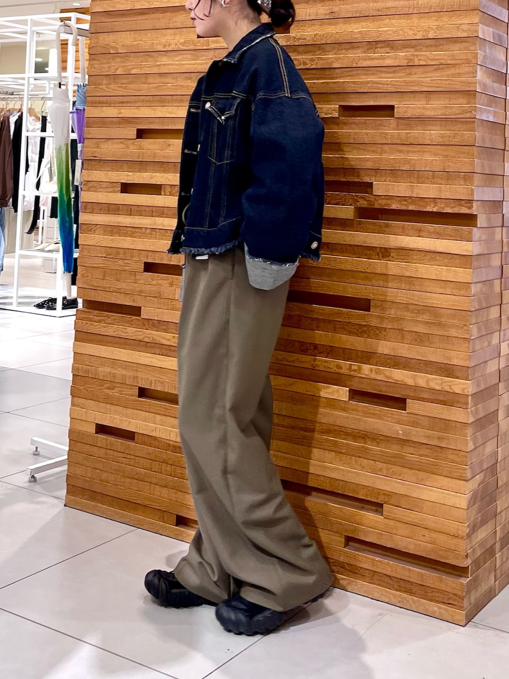 デニム特有の硬さもないので重ね着しても窮屈な感じがしないアイテムです。袖がロールアップされていて
