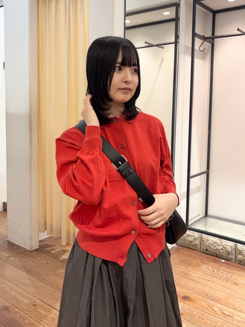 ハイゲージのボディと相まって高級感のある佇まいになります!程よくゆとりがあり肩が落ちるデザインなので女性らしい雰囲気があります◎スカート、パンツどちらも相性が良くデイリーに活躍できます♬