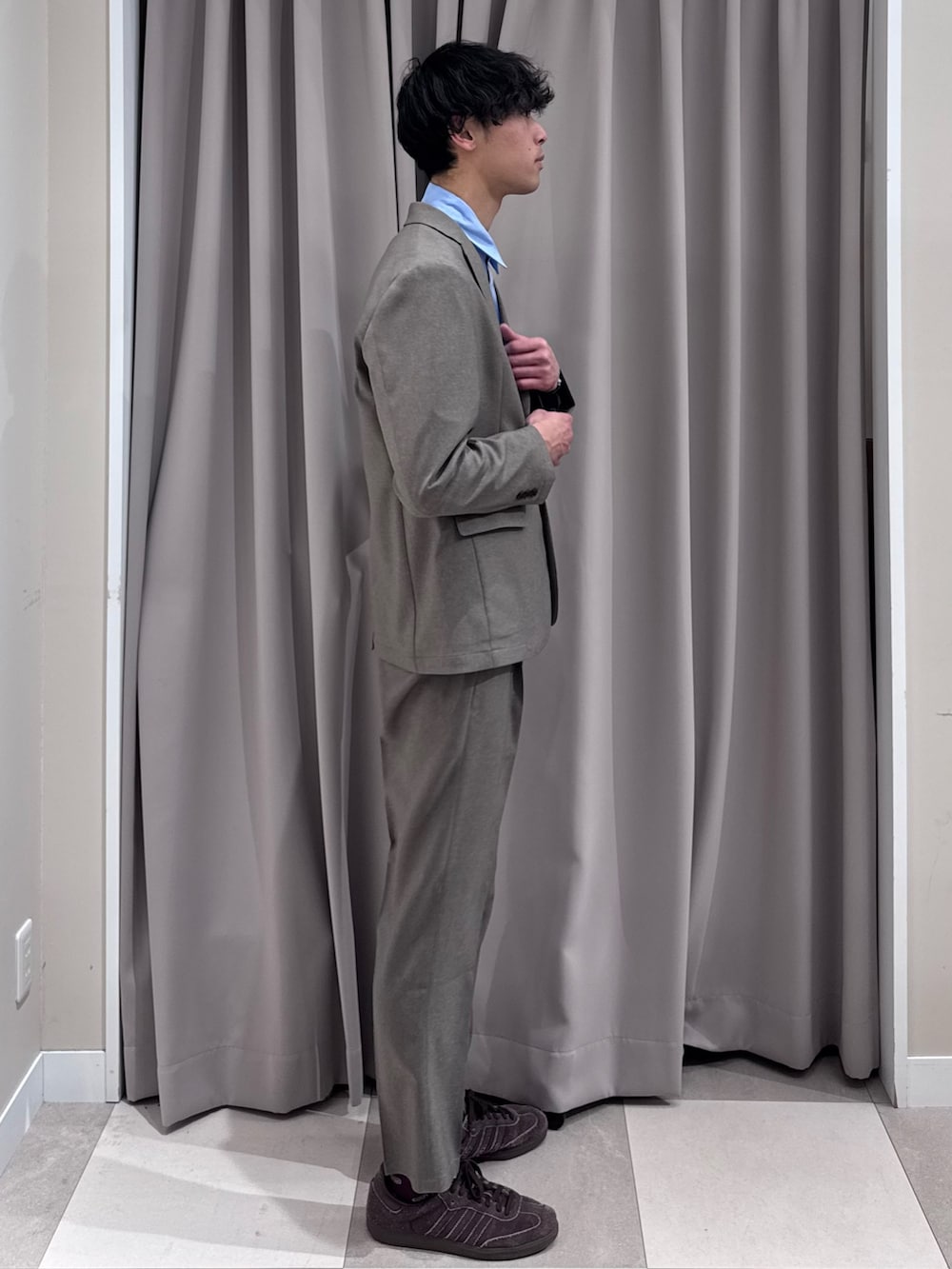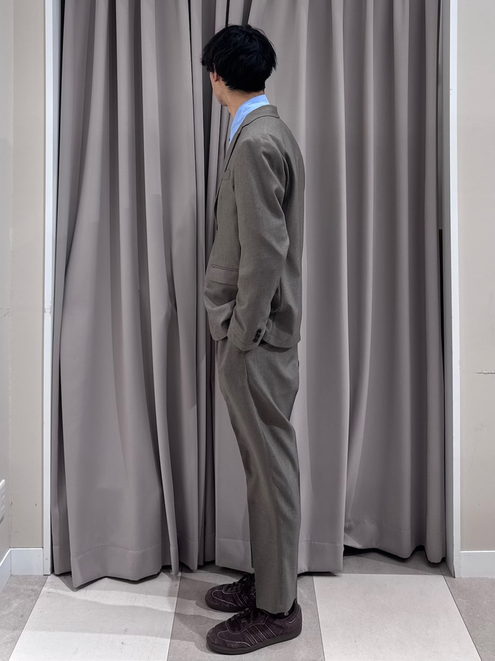 細身のスーツほど畏まった感じのでないアイテム。セレモニー等のオン使用のみならず、オフでも使えるフォーマルの中に少しのカジュアルが入ったセットアップ。