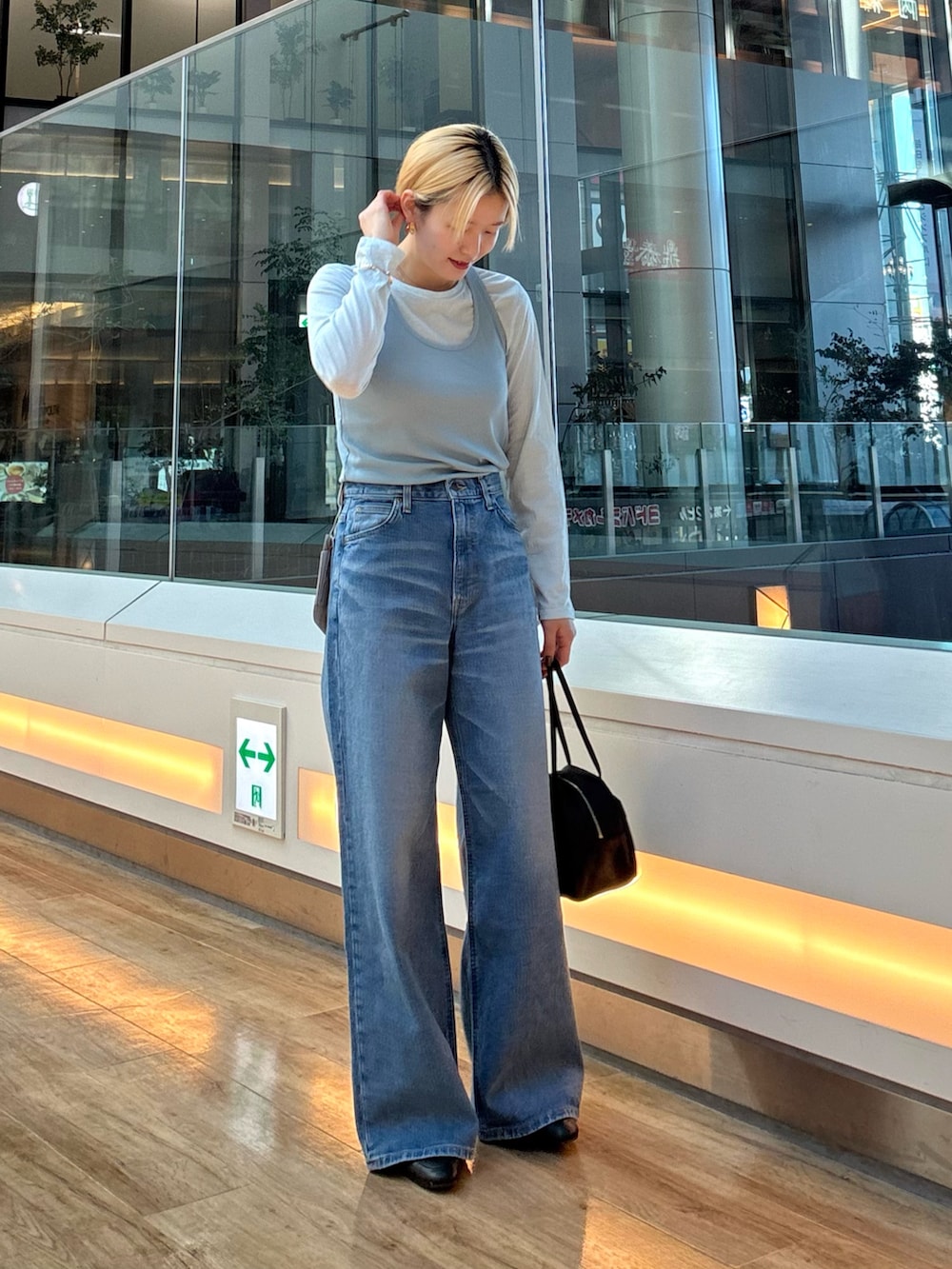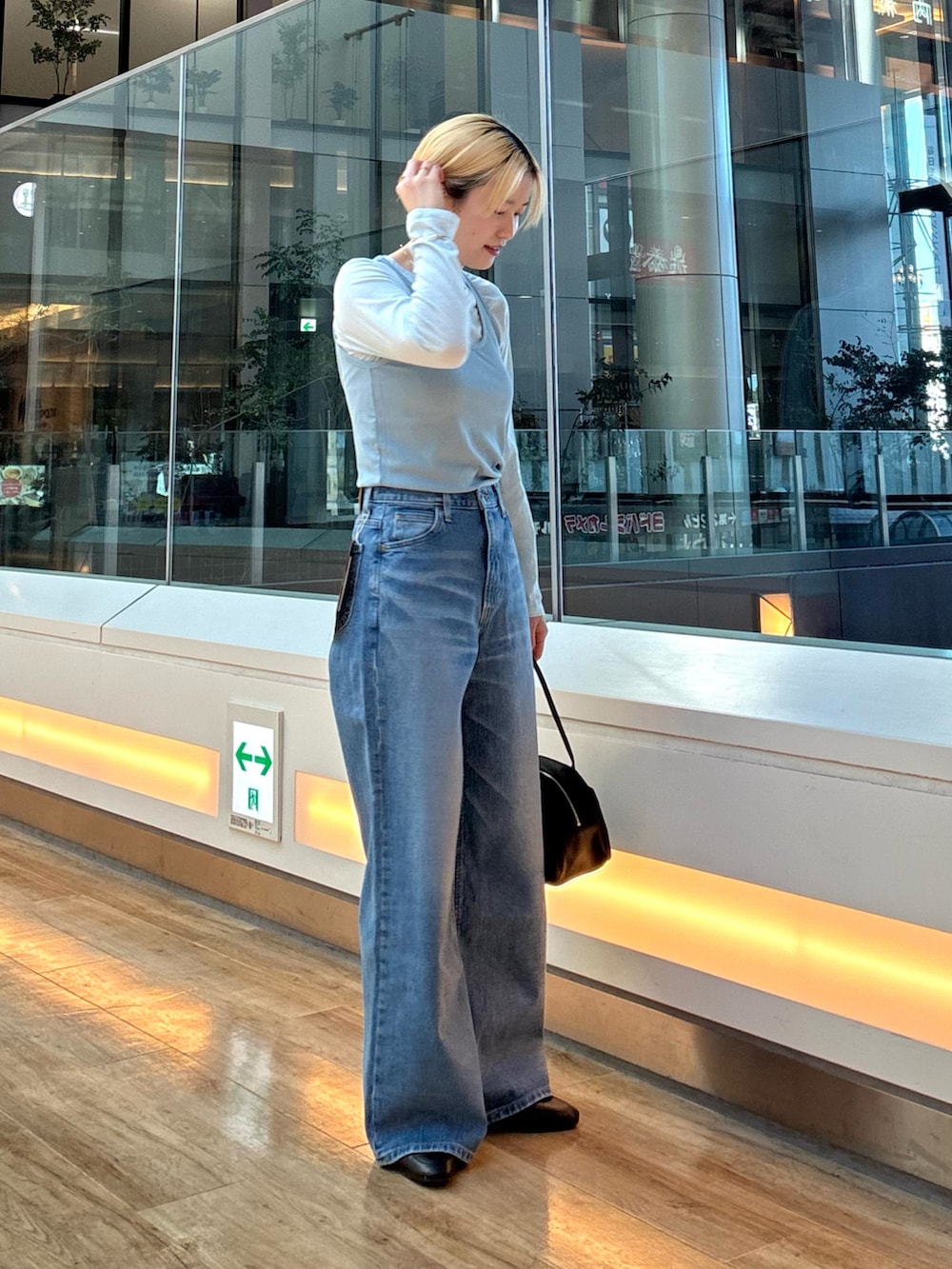 ピチッとしたトップスなので、下はワイドパンツでバランスよくなりますね!!