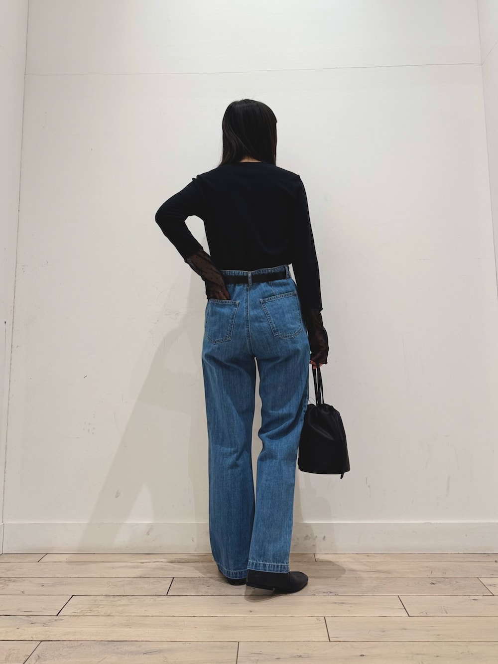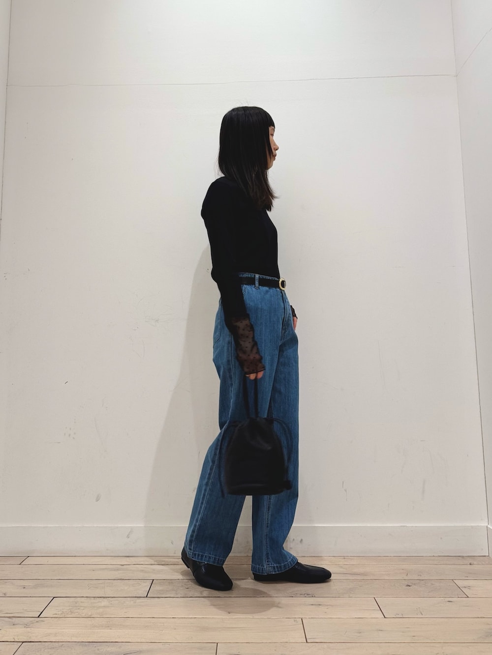 今回1枚で着ましたが、スウェットやカーディガンを上から着た時に袖口からチラッと見せる着方がおすすめです☺️