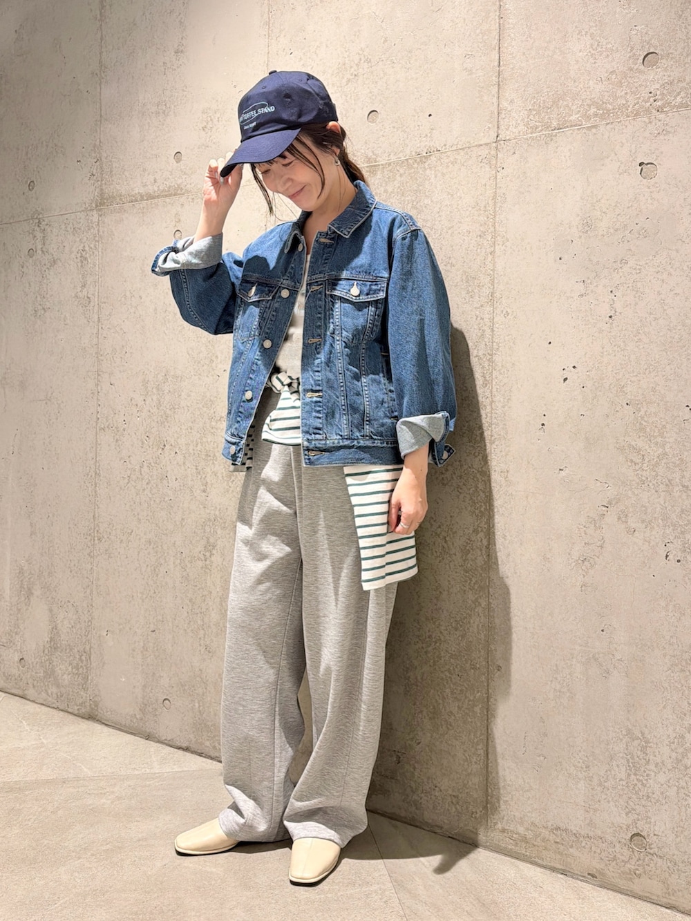 今回は、スウェットパンツを合わせて、リラックス感のあるカジュアルコーディネートにしてみました。