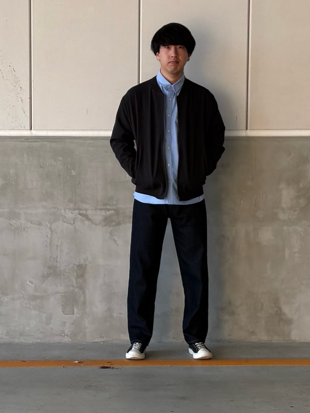 ジップアップブルゾンを使ったこれからの季節におすすめのコーデです。ブルゾンはの色は3種類あって、様々なコーデに合わせやすい黒色がおすすめです!