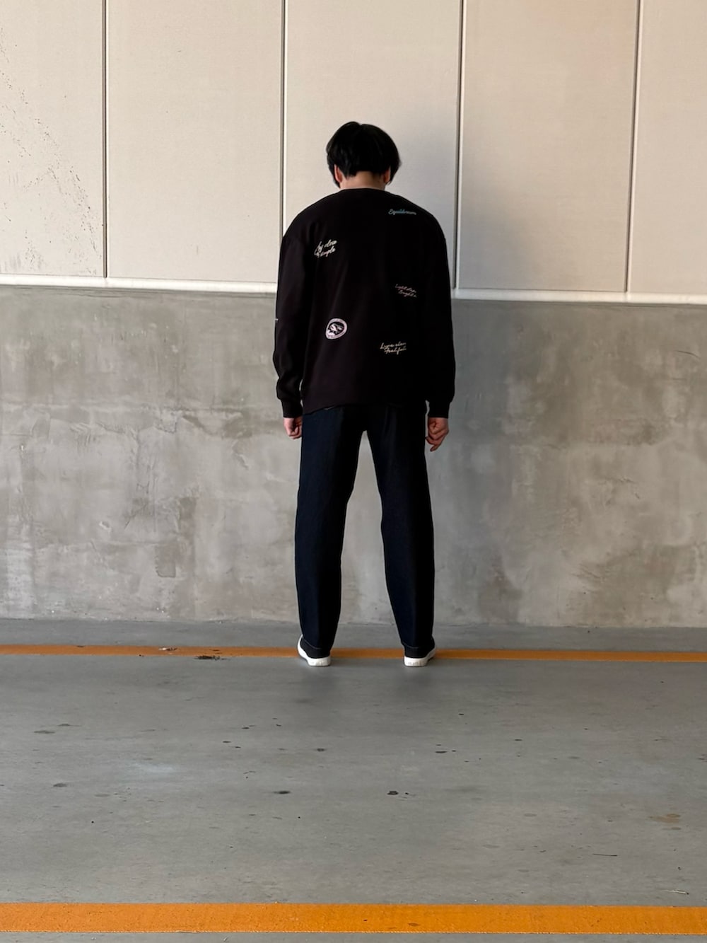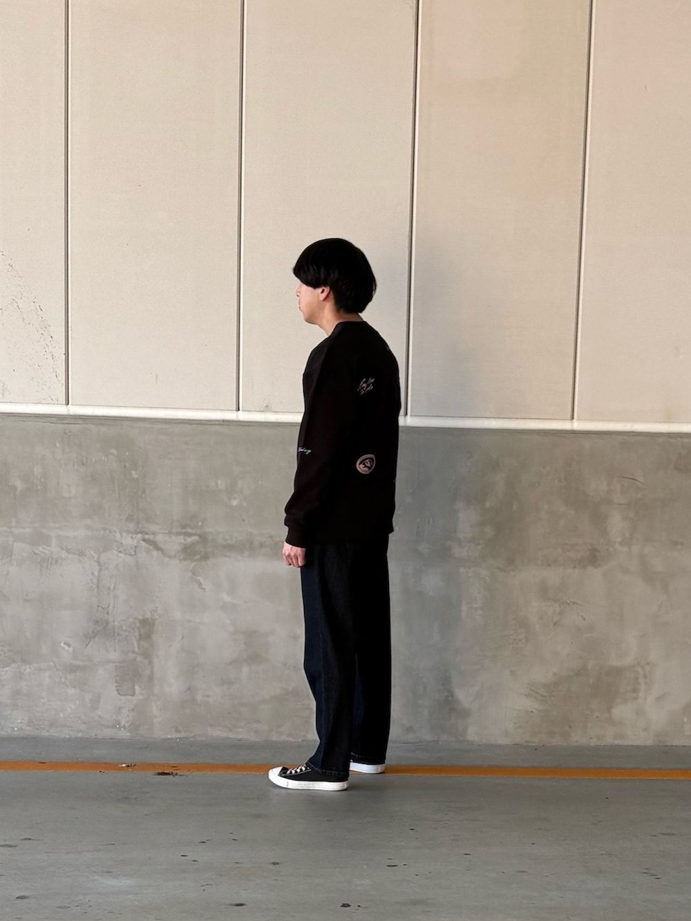 人気のスウェットを取り入れた春のコーデになります。他にはないデザインで、女性の方でも来ていただけると思います!