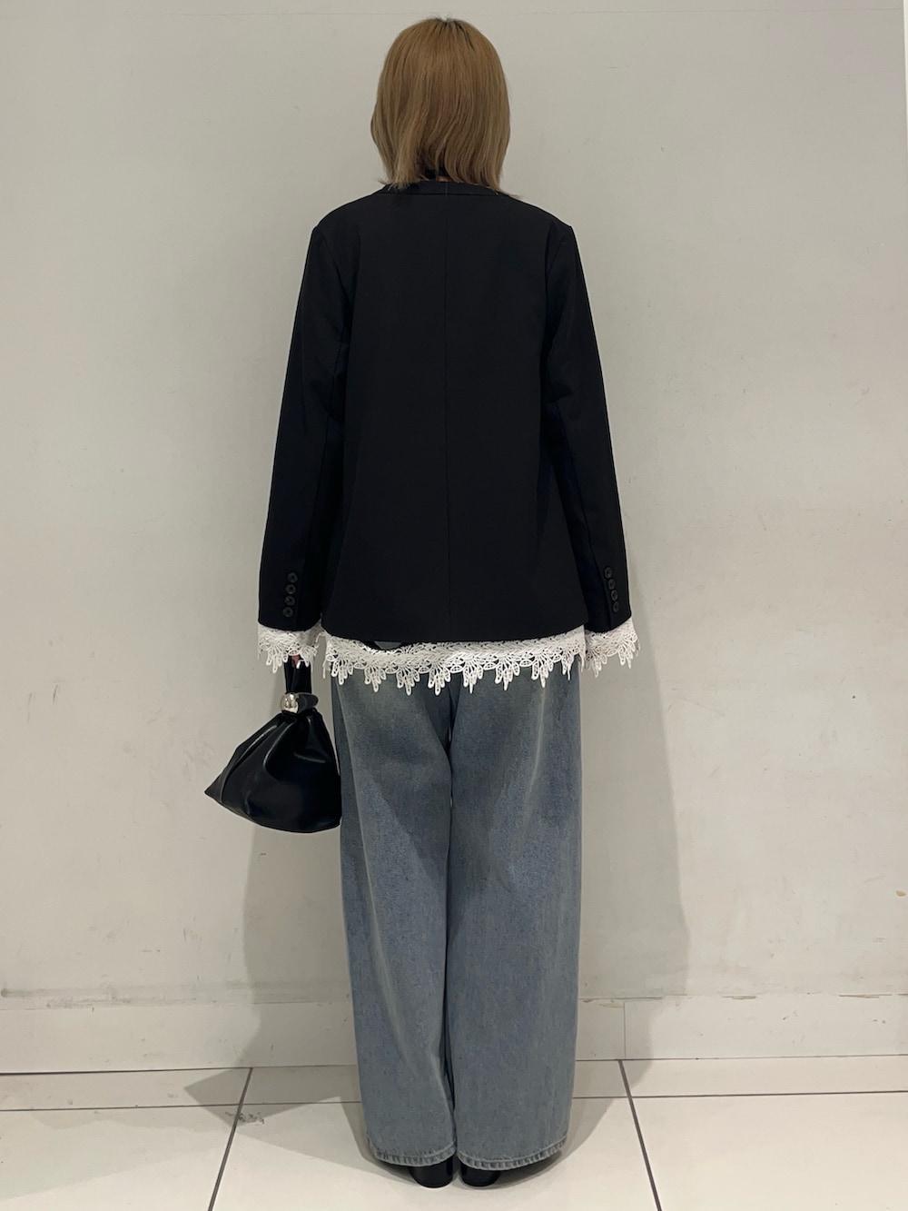 SENSE OF PLACEレースレイヤードノーカラージャケット- 着用カラー:
