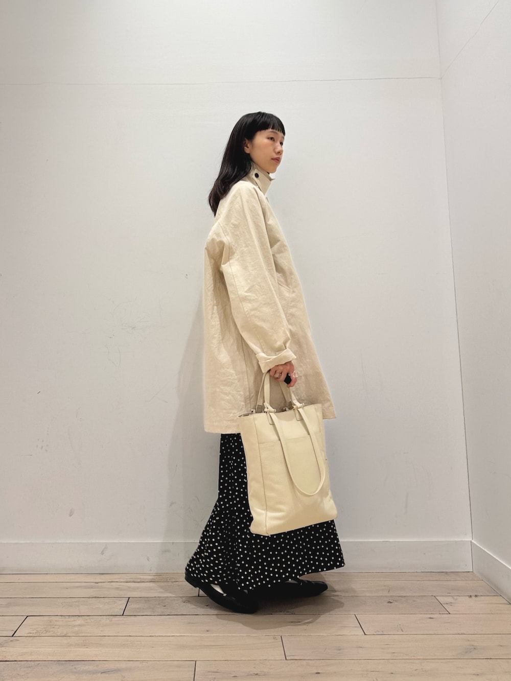 後ろに大きくタックが入っているので、閉じても少し広がるシルエットかわいいです♪