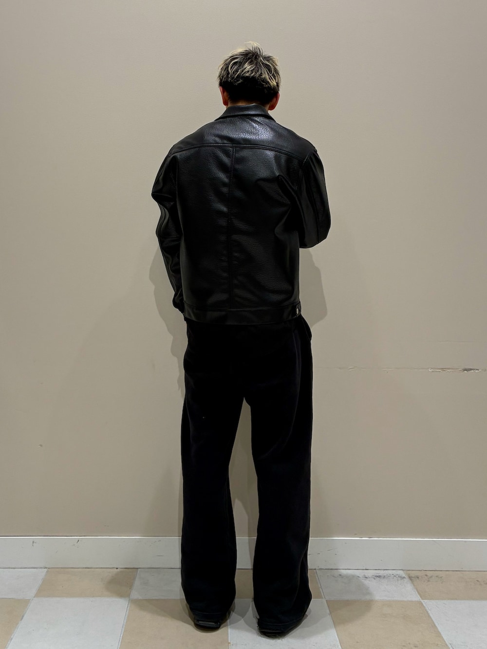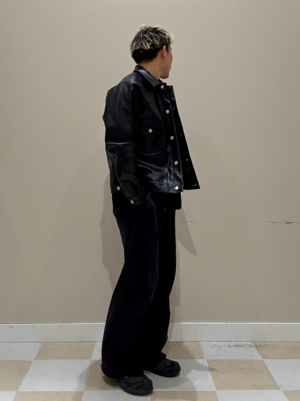 レザージャケットとスウェットパンツで作るオールブラックコーデ!