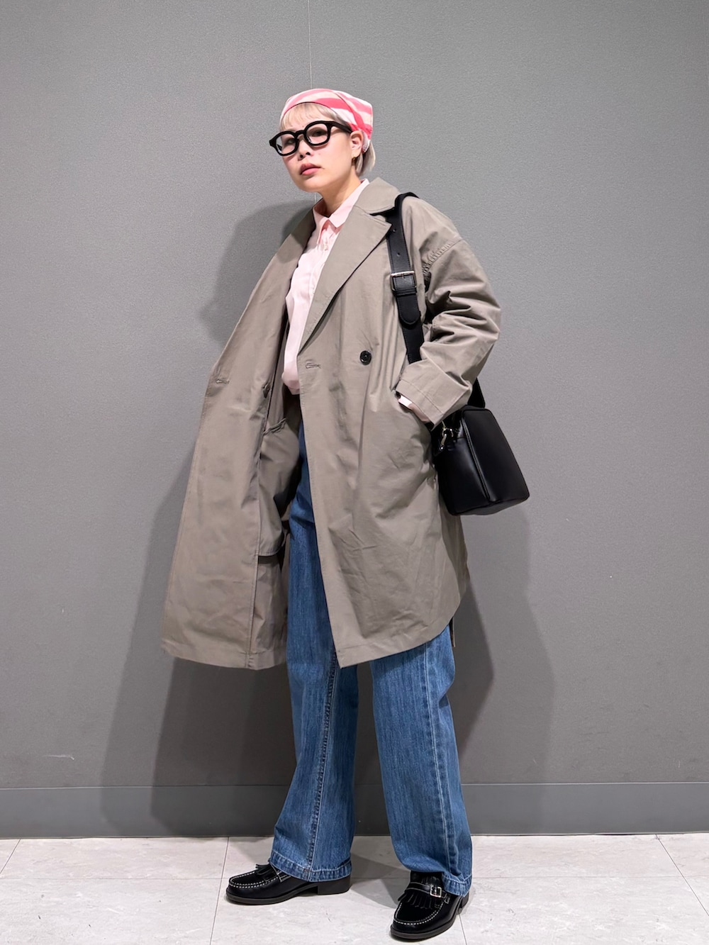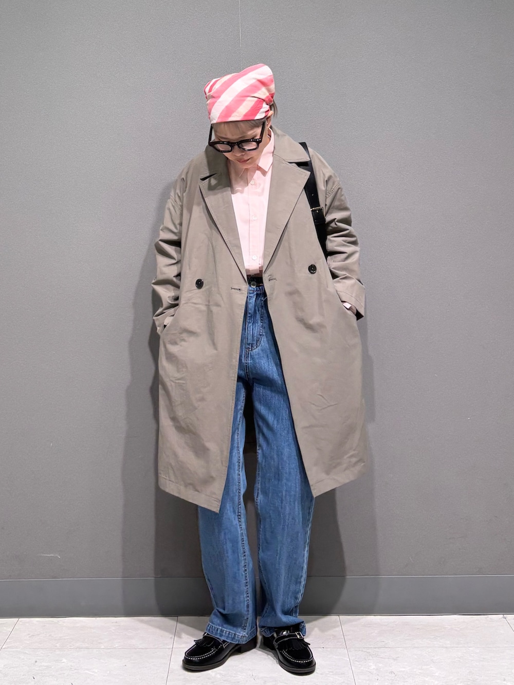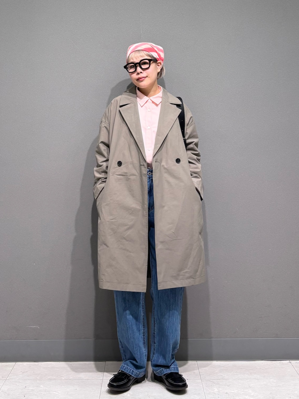 ピンク×ベージュでまとめた春スタイル。