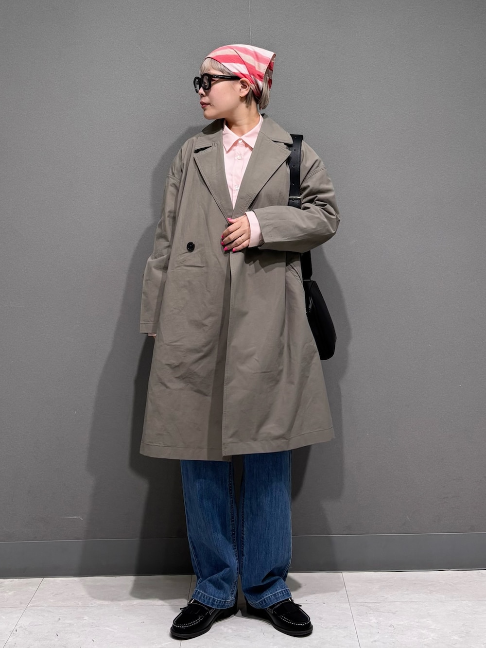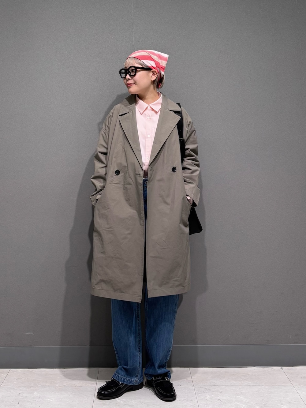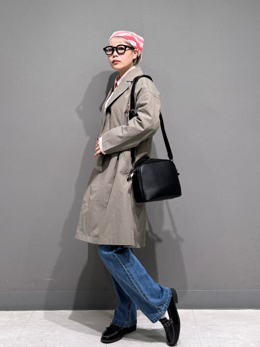 ピンク×ベージュでまとめた春スタイル。