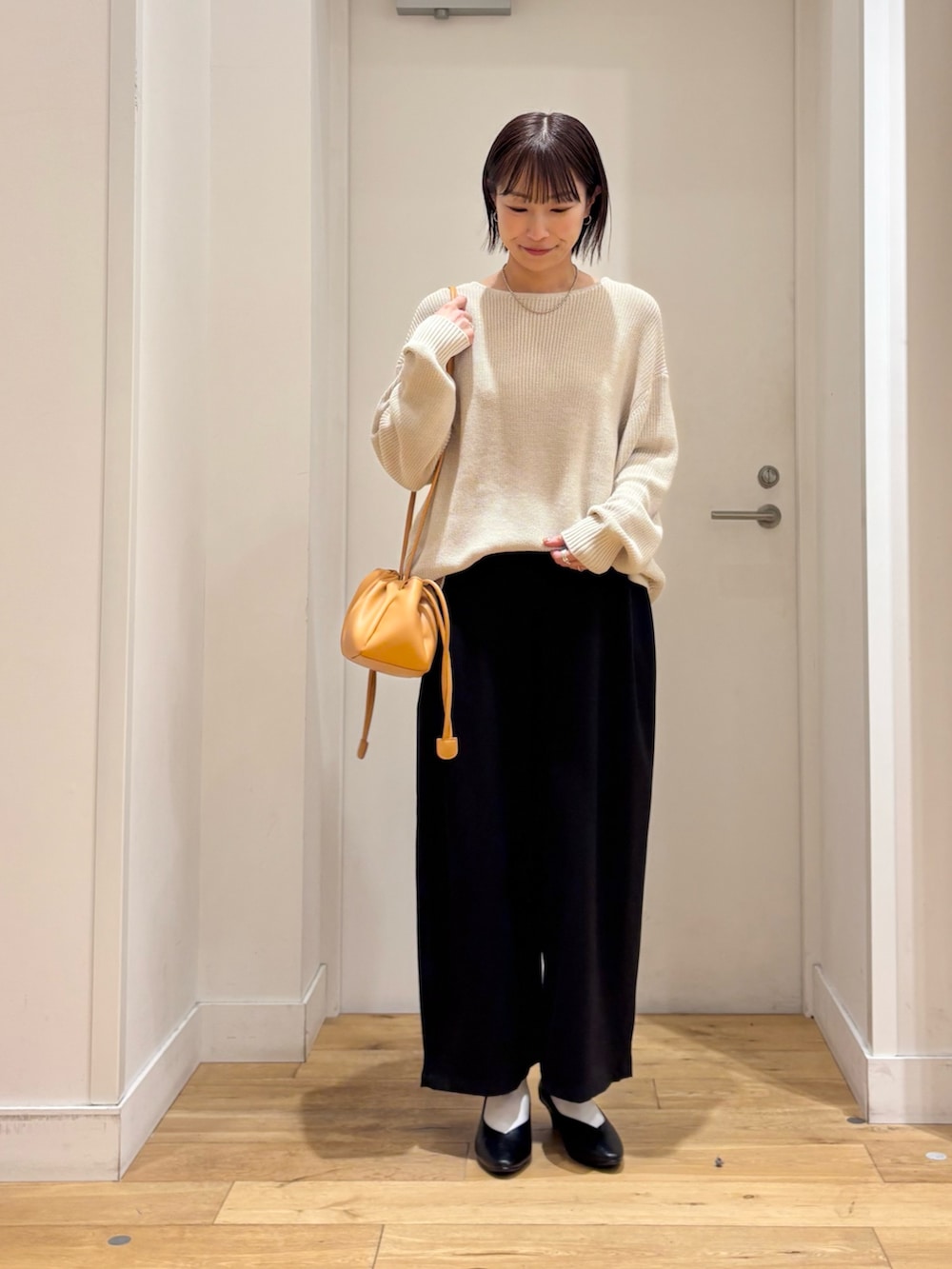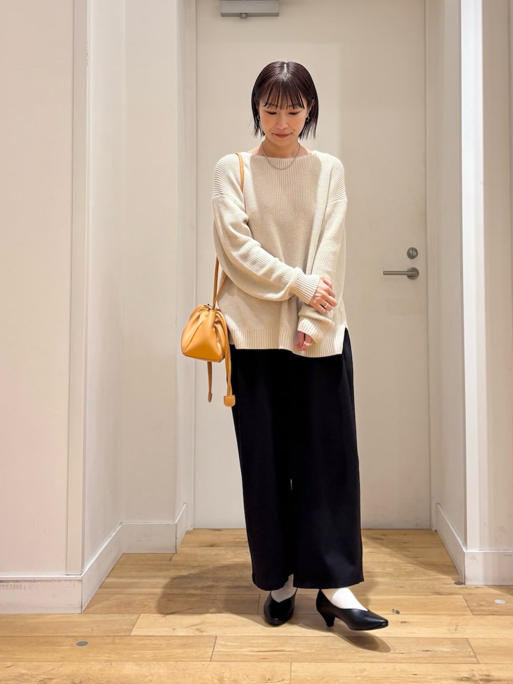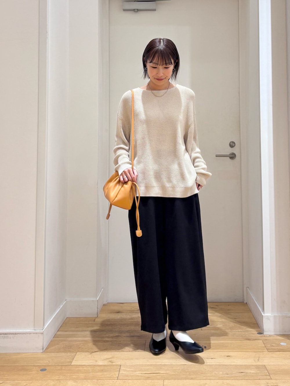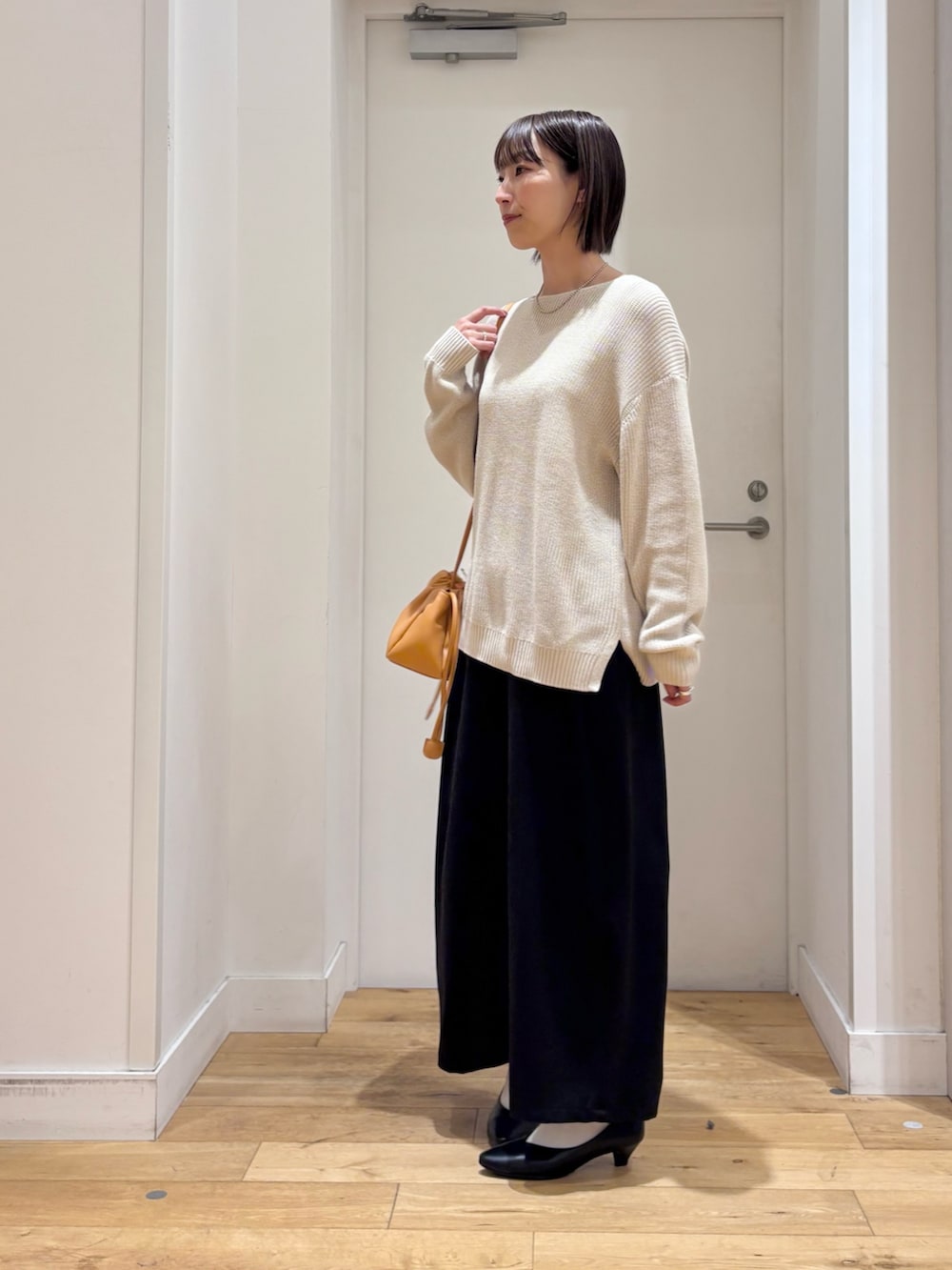 程よくゆとりのある柔らかい生地感のニットが女性らしい抜け感を与えてくれます♪
