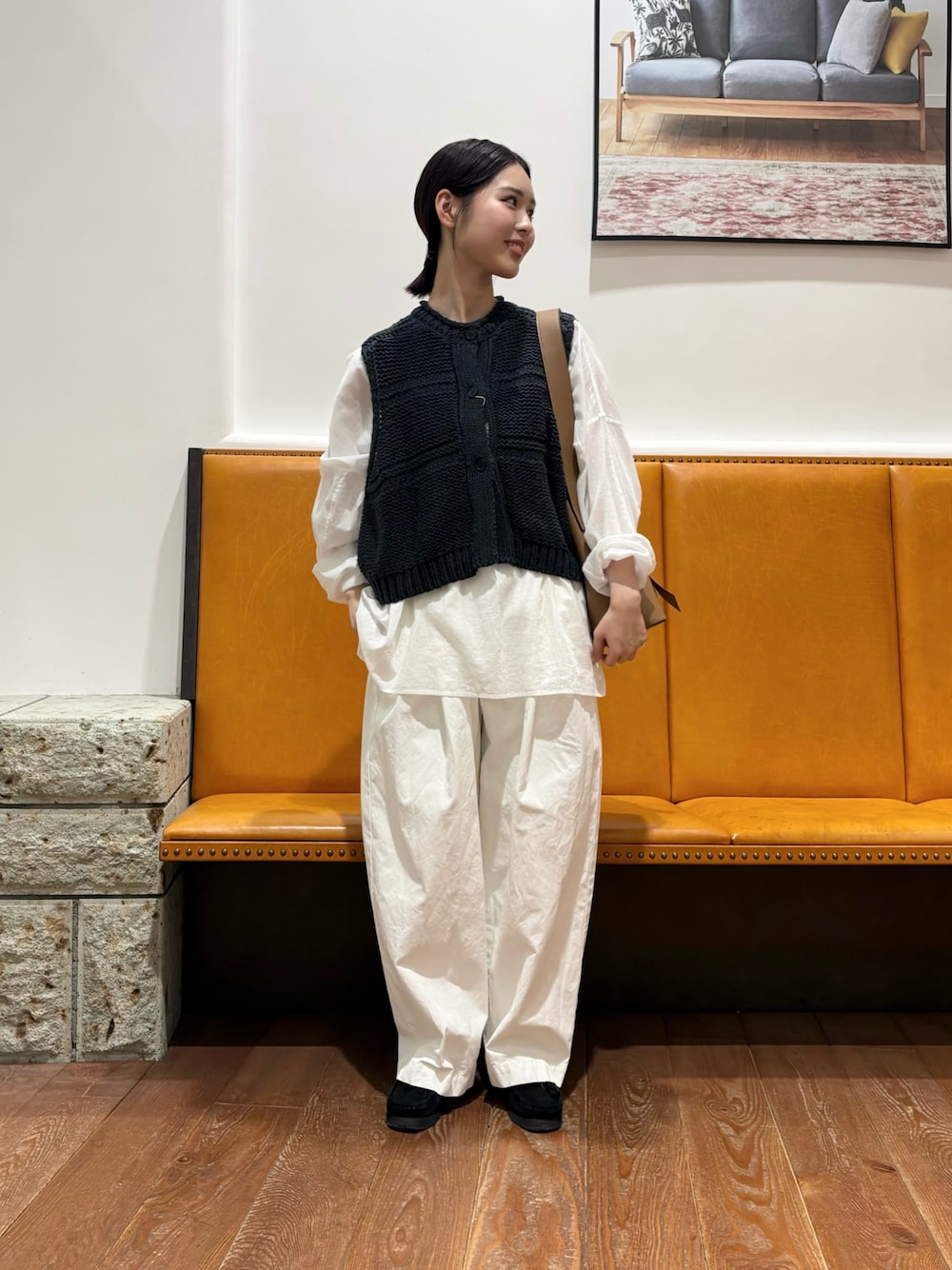 目の細かいニットになっているためインナーにTシャツを持ってきて春秋でもタンクトップを合わせて初夏でも着用できる1着です