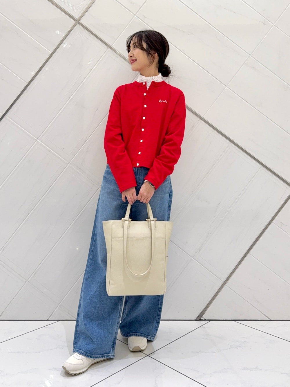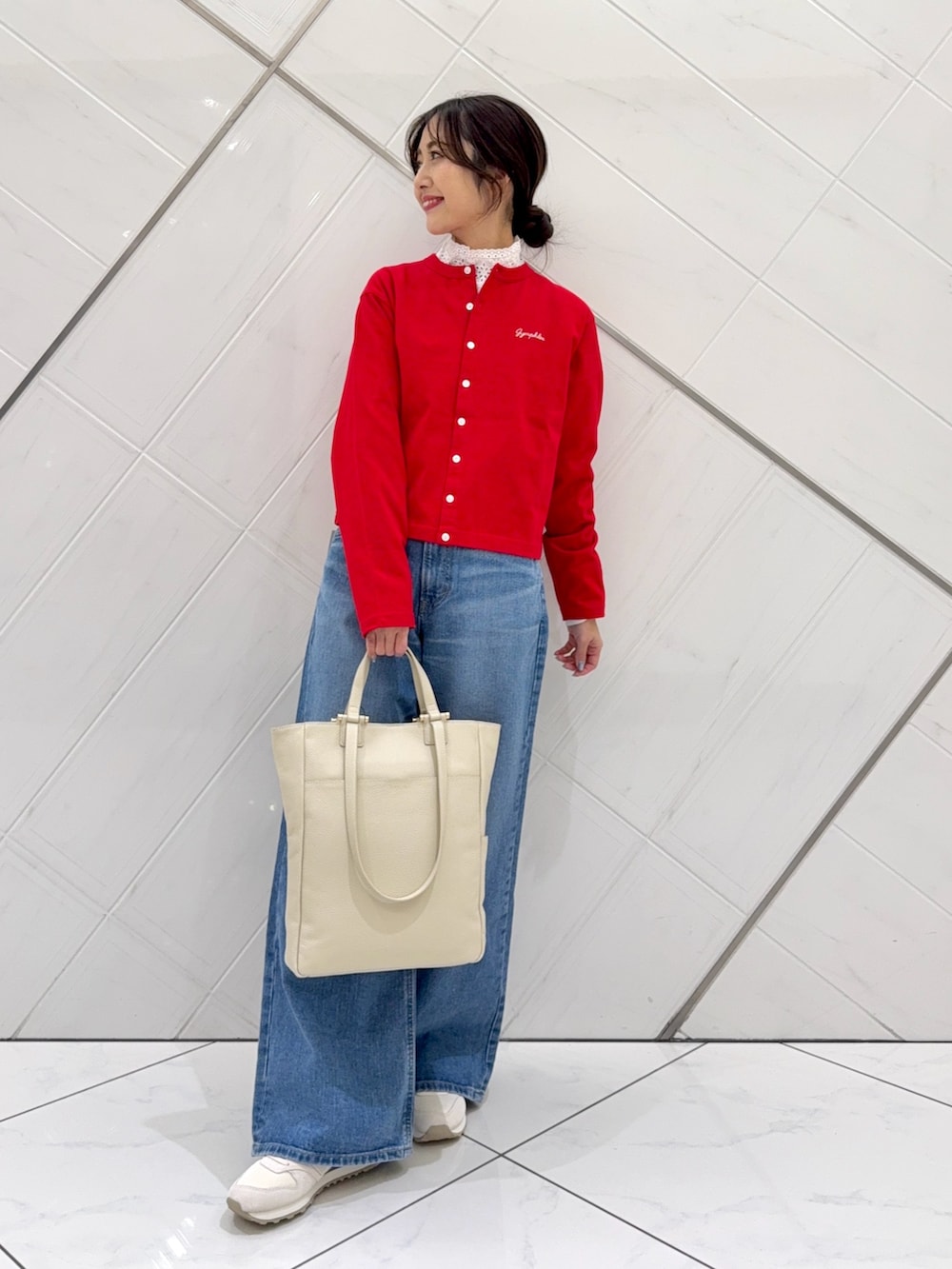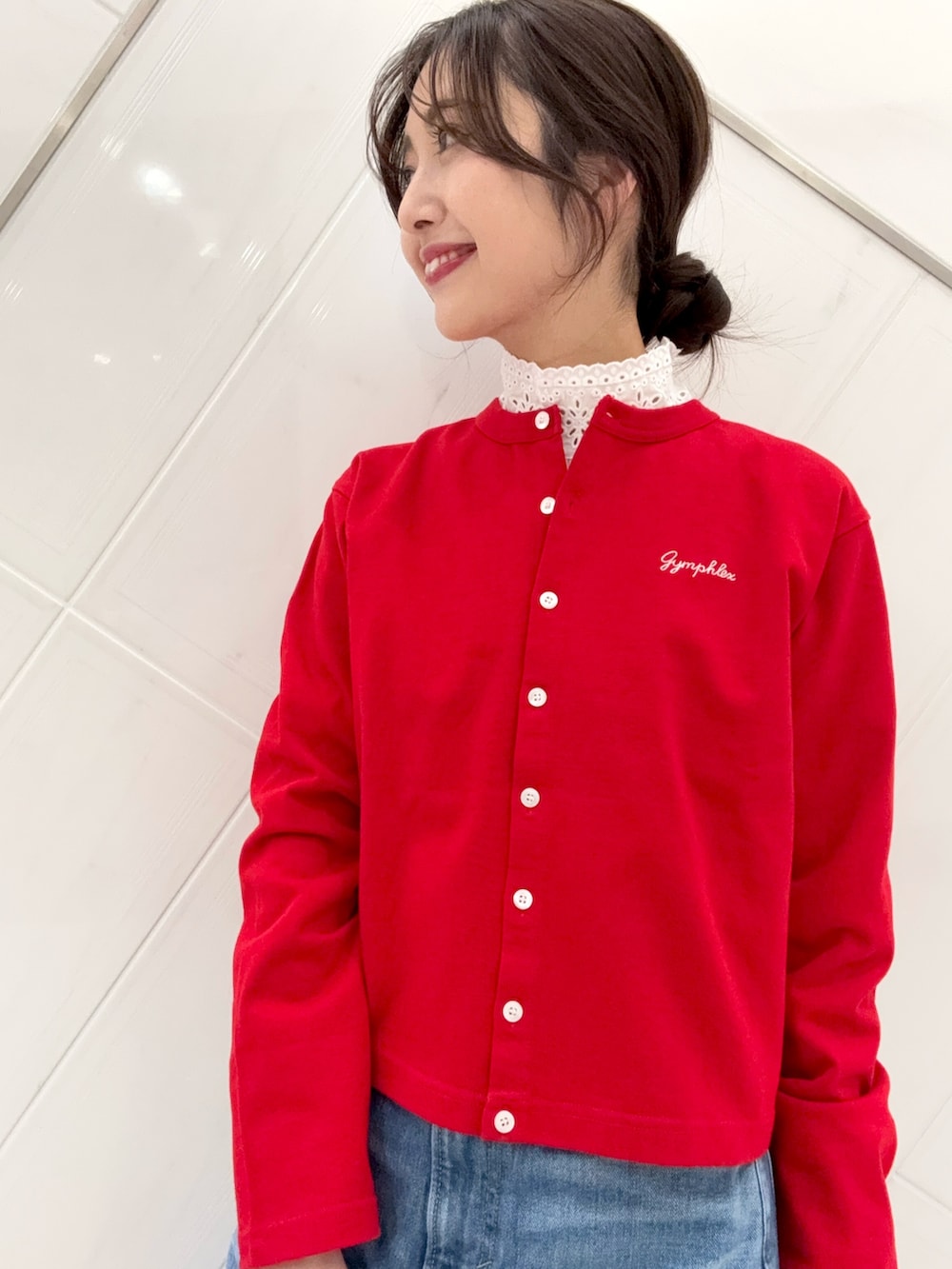 カーディガンは入荷したばかりのジムフレックスのアイテムでコンパクトなシルエットで胸元のロゴ刺繍が可愛い1着です。