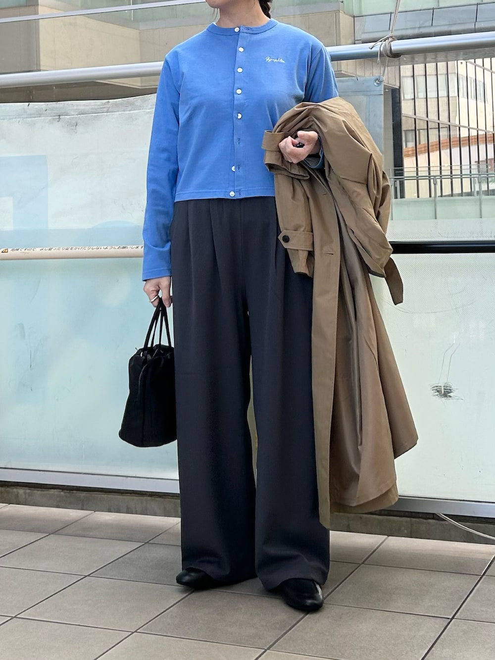 ボトムは楽なパンツにしました。