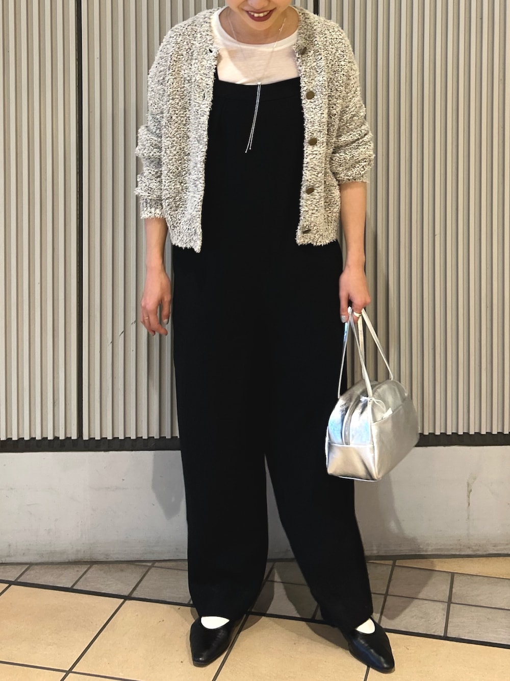 ジョーゼットのサロペットを合わせてお出かけはもちろん、そのまま子どもたちと公園にも行けそうなコーディネートにまとめました!