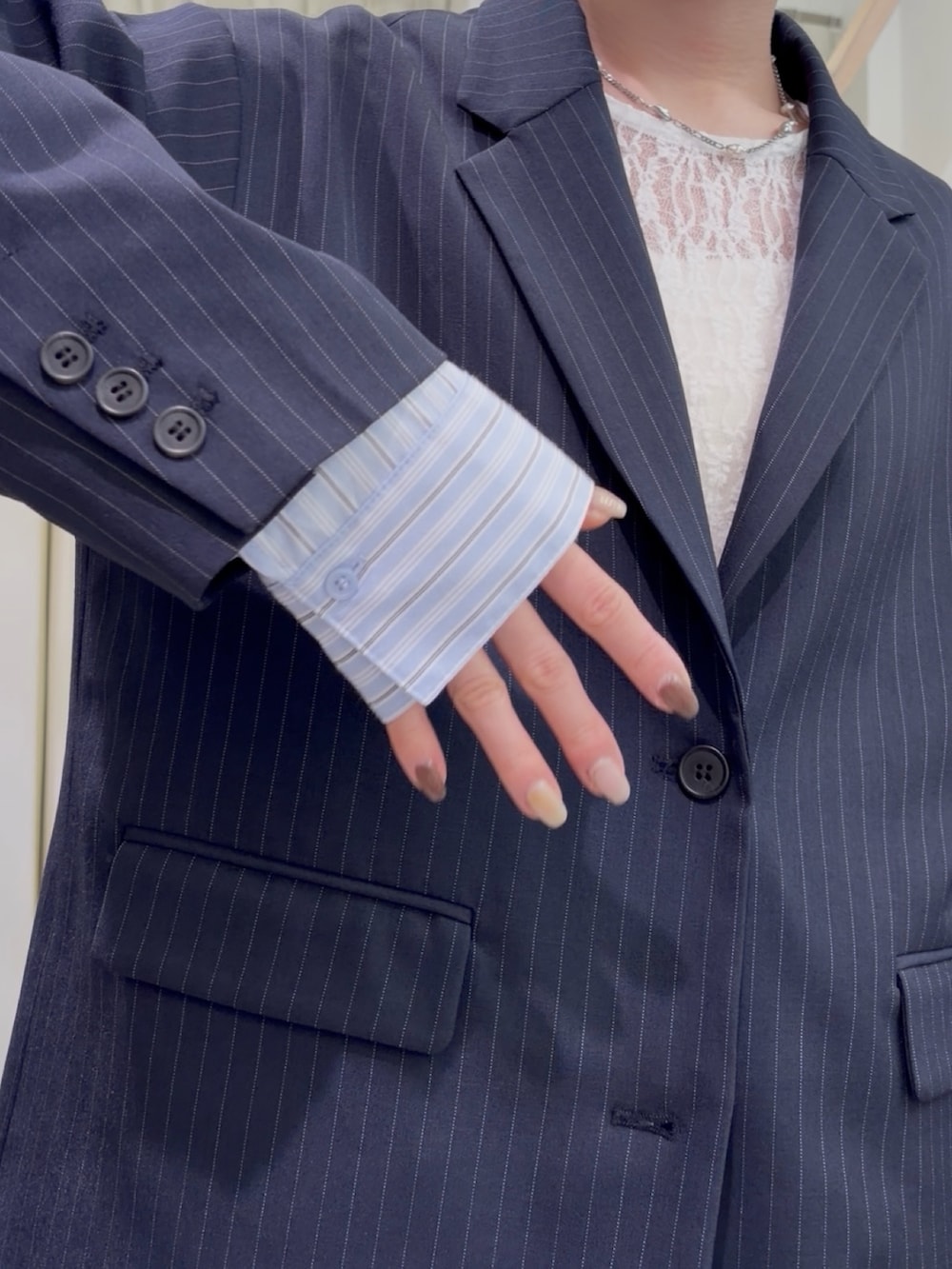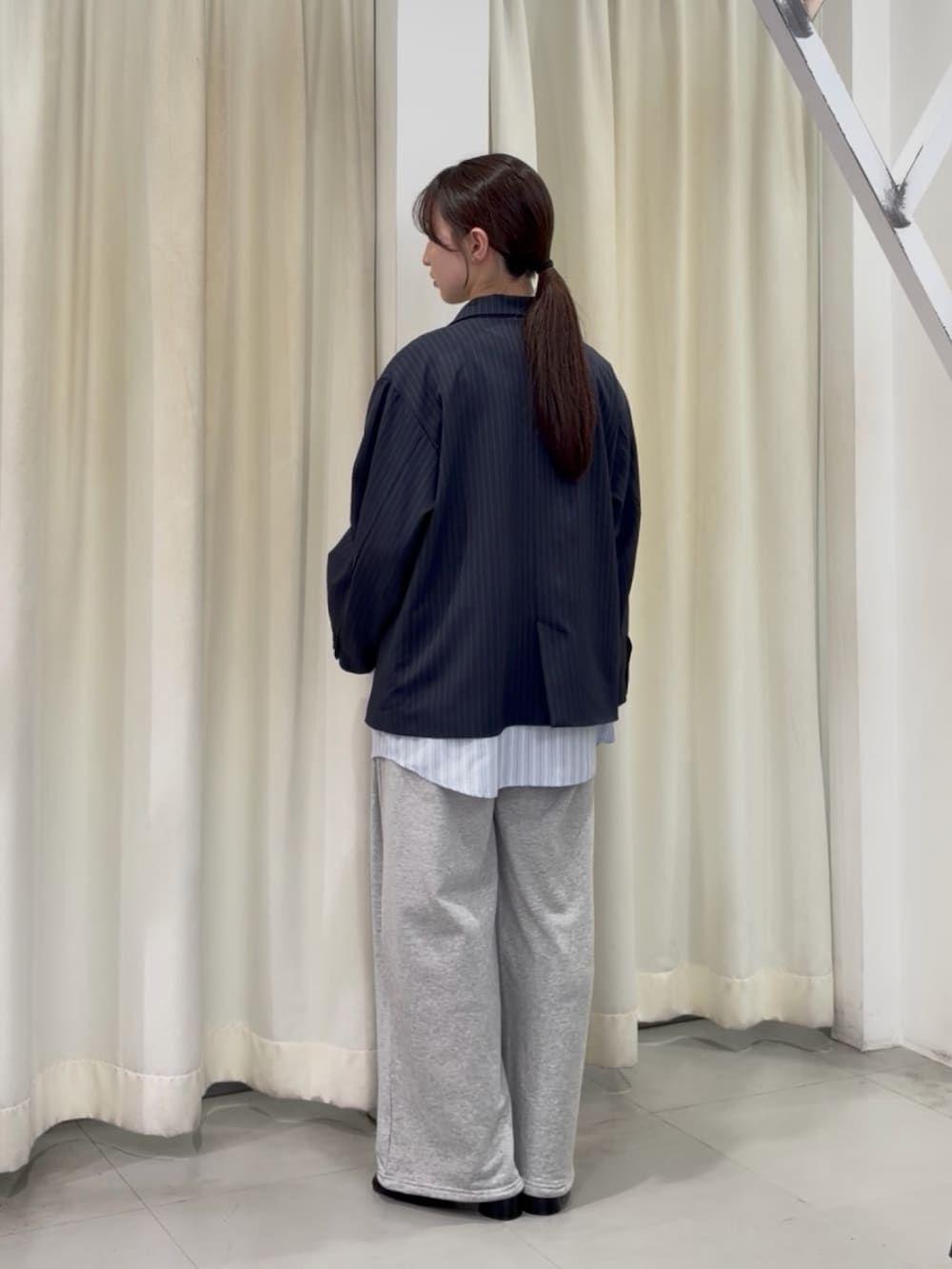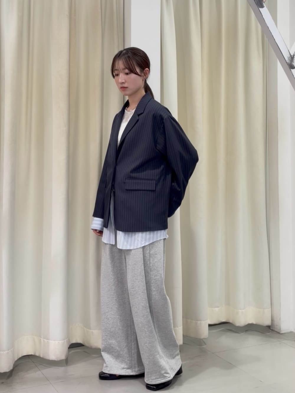 ゆとりのあるピンストライプジャケットで、きちんと感をプラスできます✨