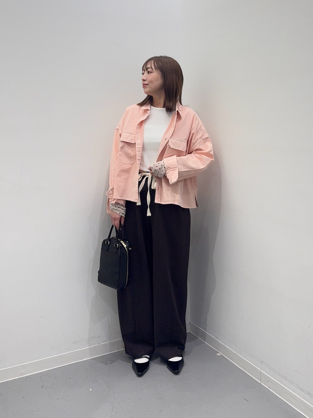 春らしいピンクシャツ◎