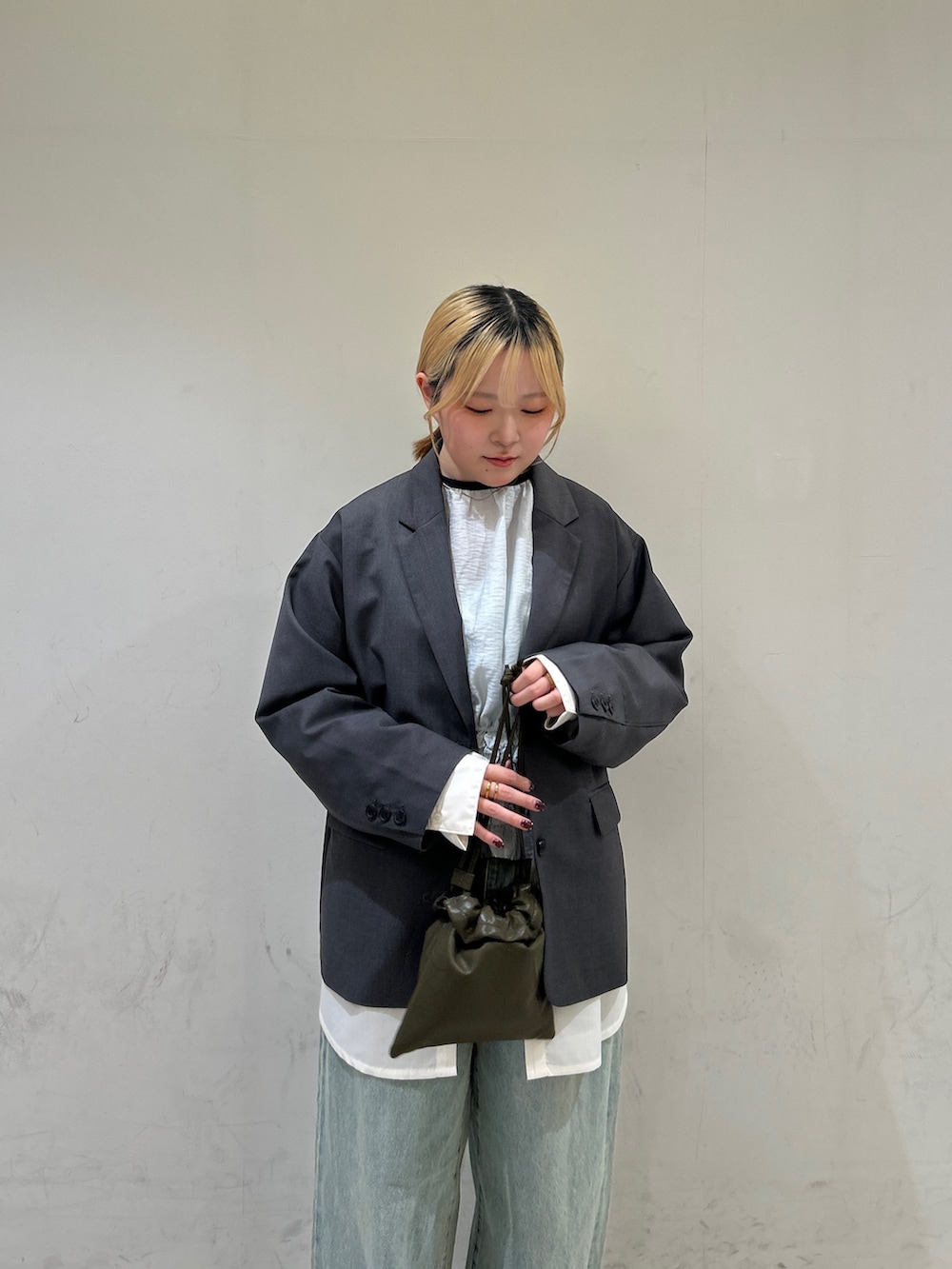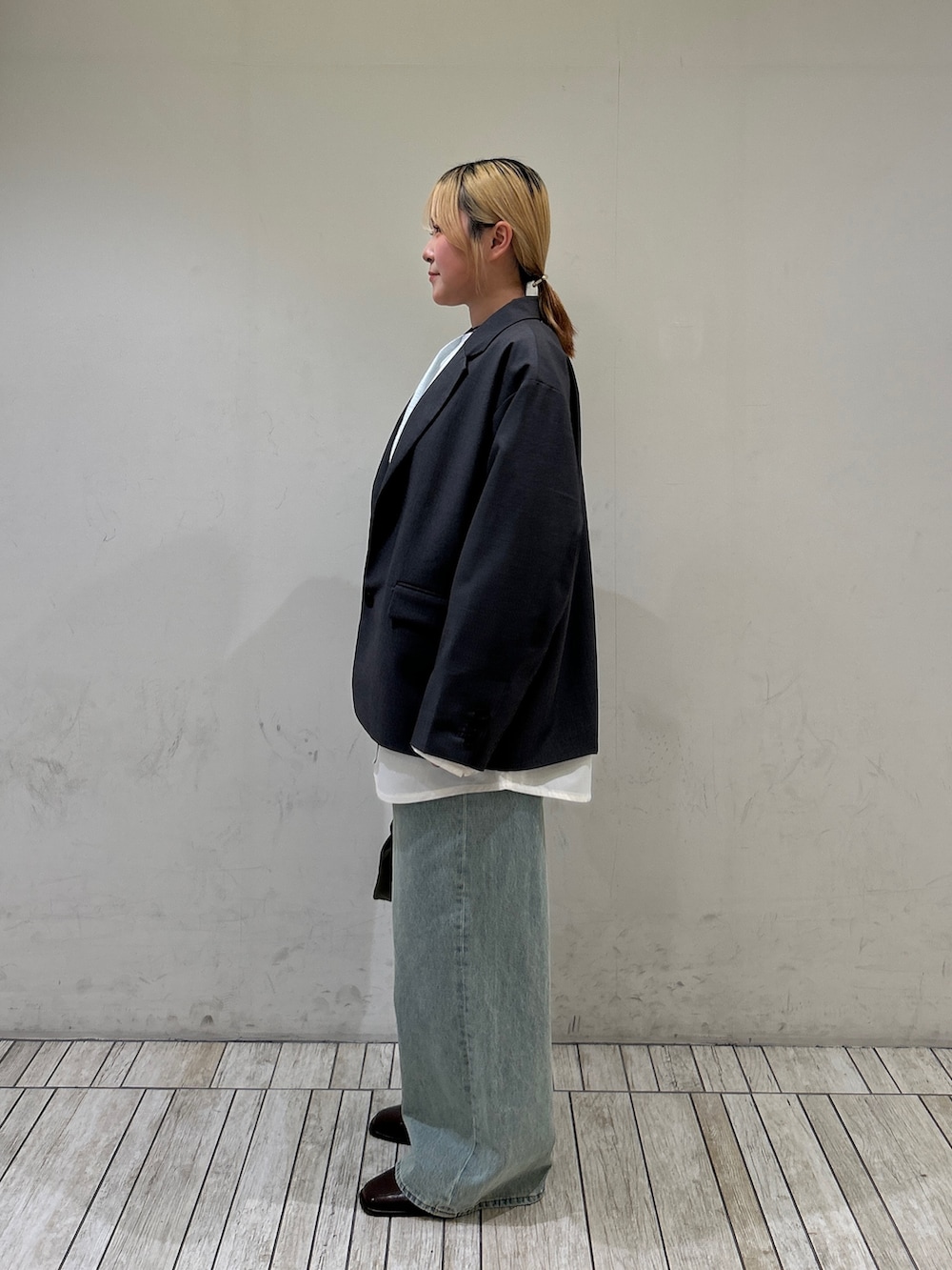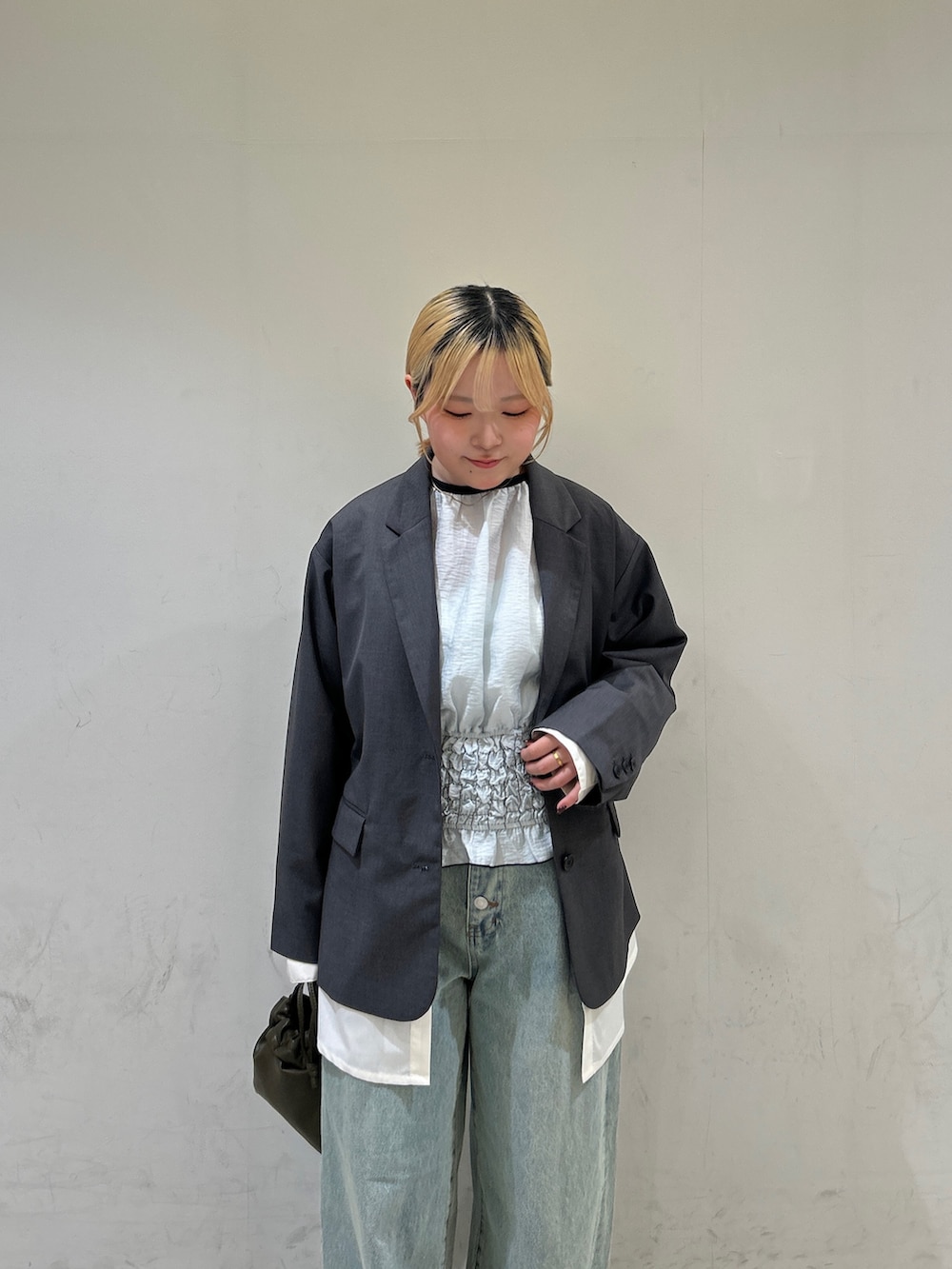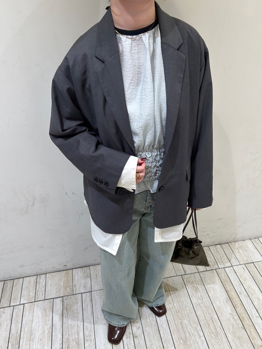 中にブラウスを合わせているので甘くなり過ぎないよう、デニムでカジュアルダウンさせてます✨