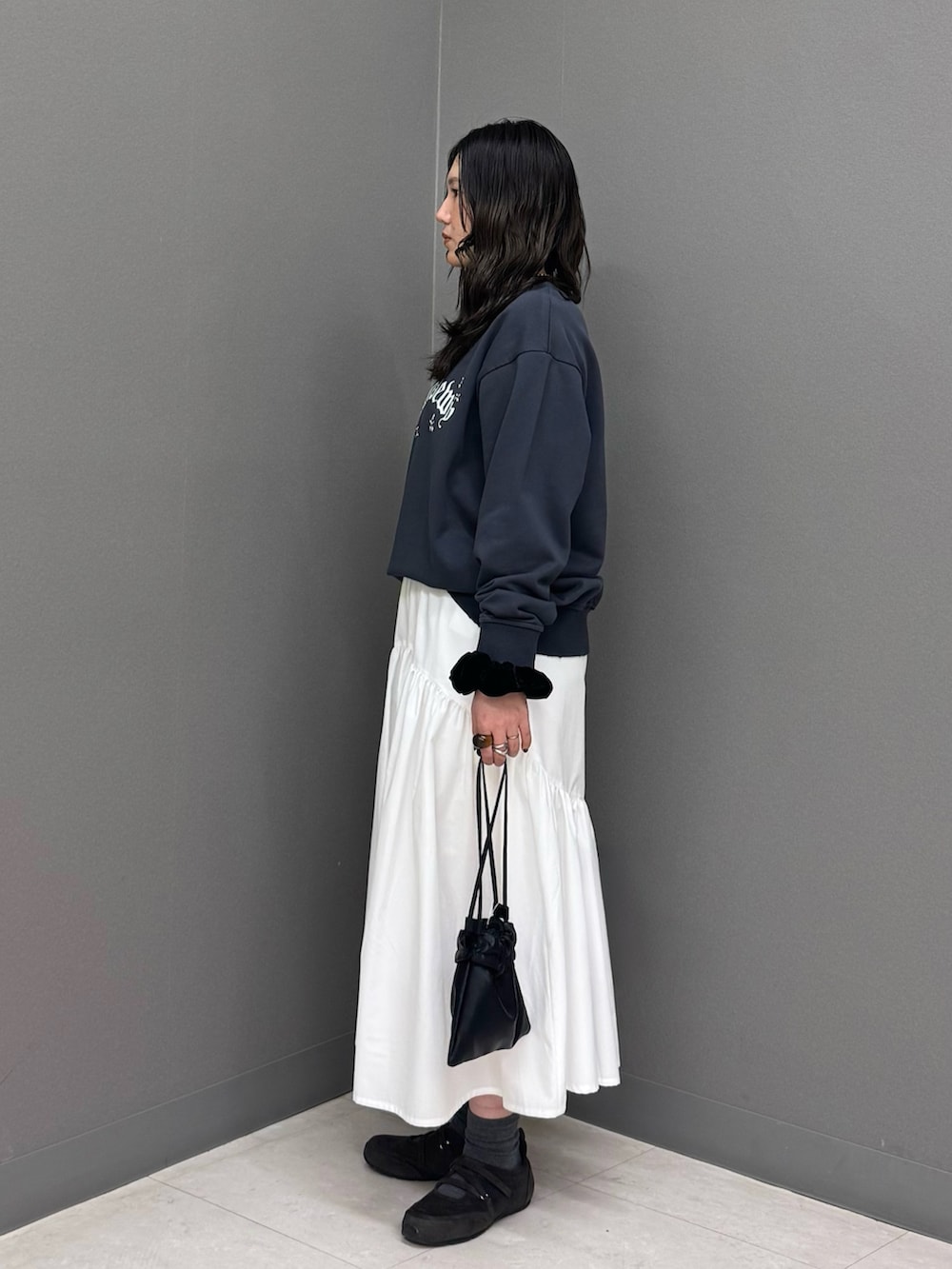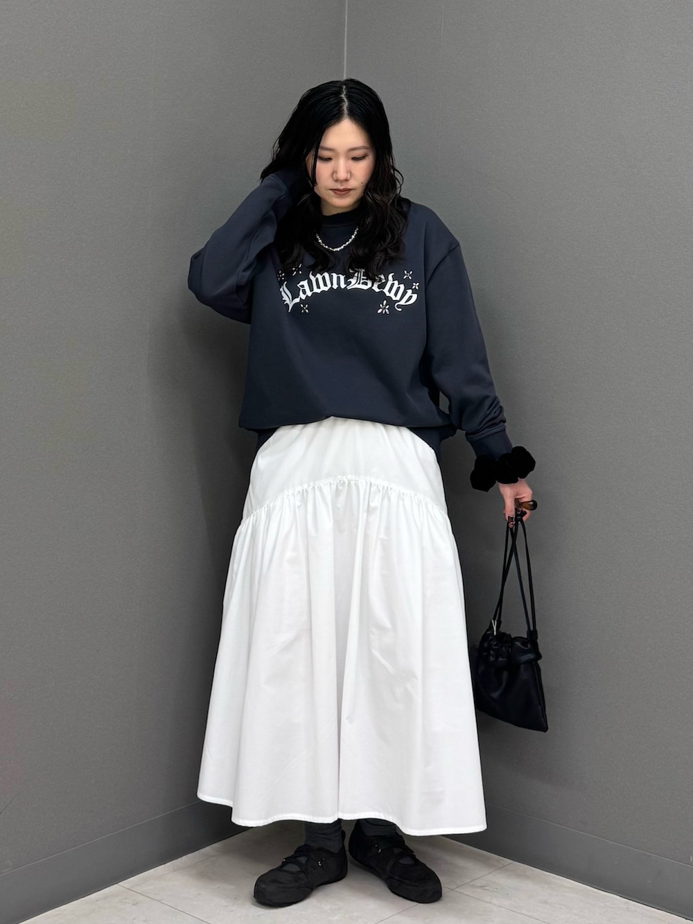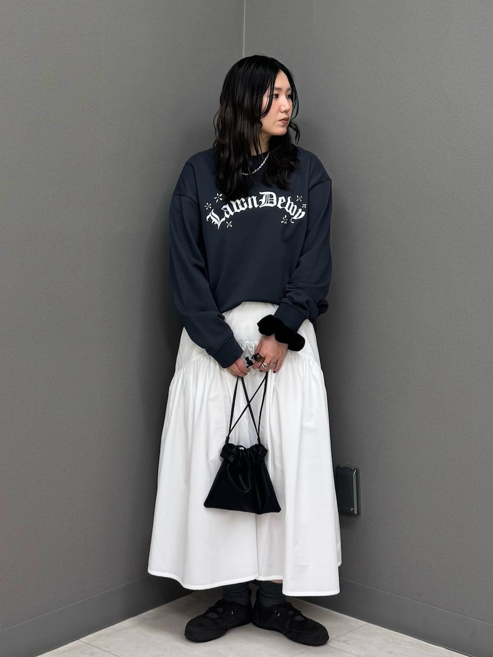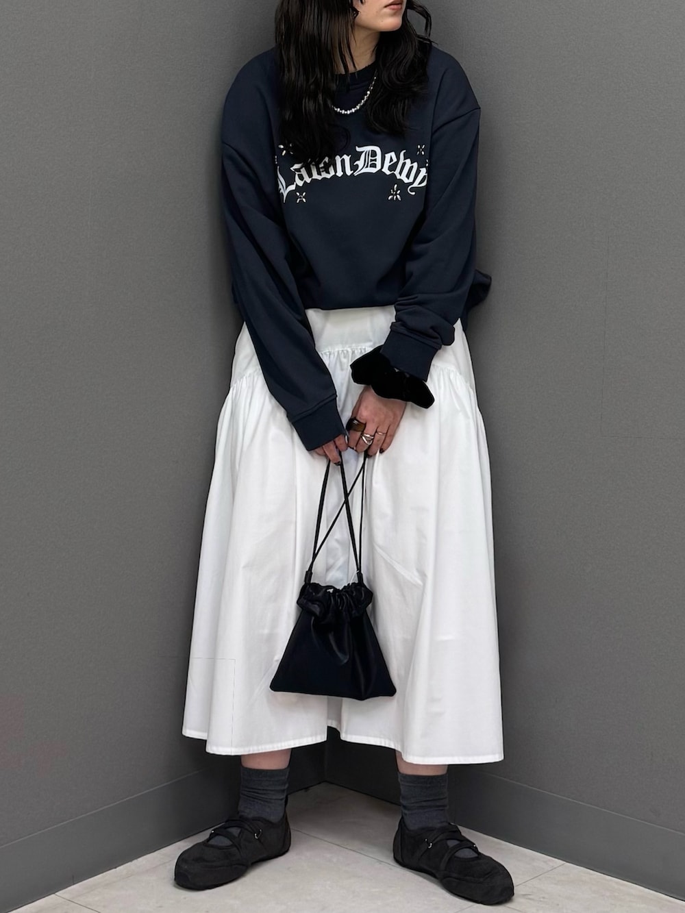 今回は今っぽくミディスカートと合わせて甘めカジュアルに🎀