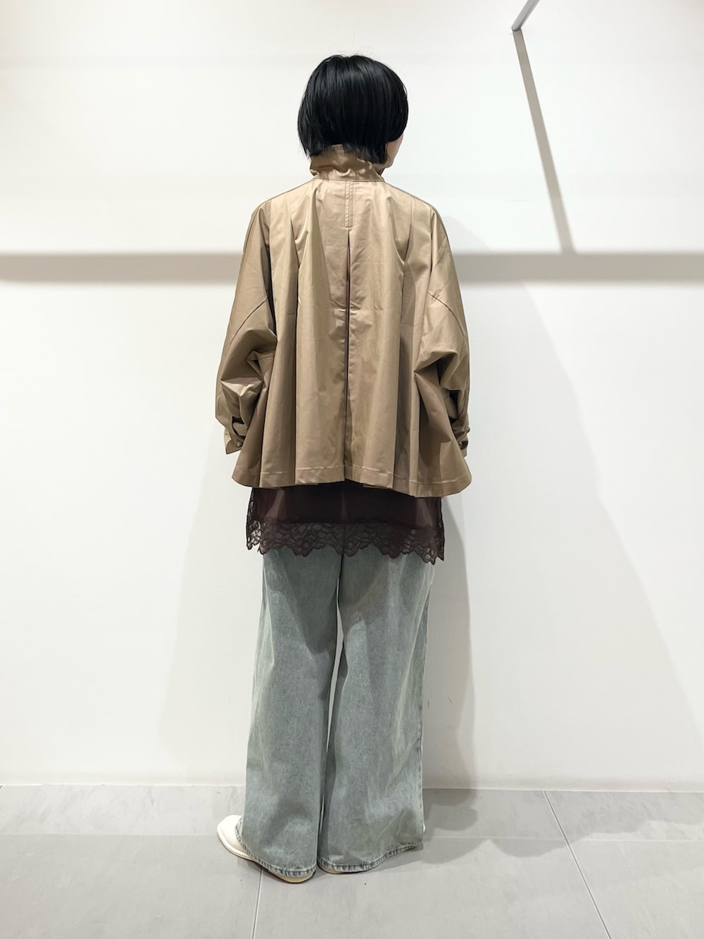 スタンドカラーになるコートは冬から春の移り変わりにぴったりです。